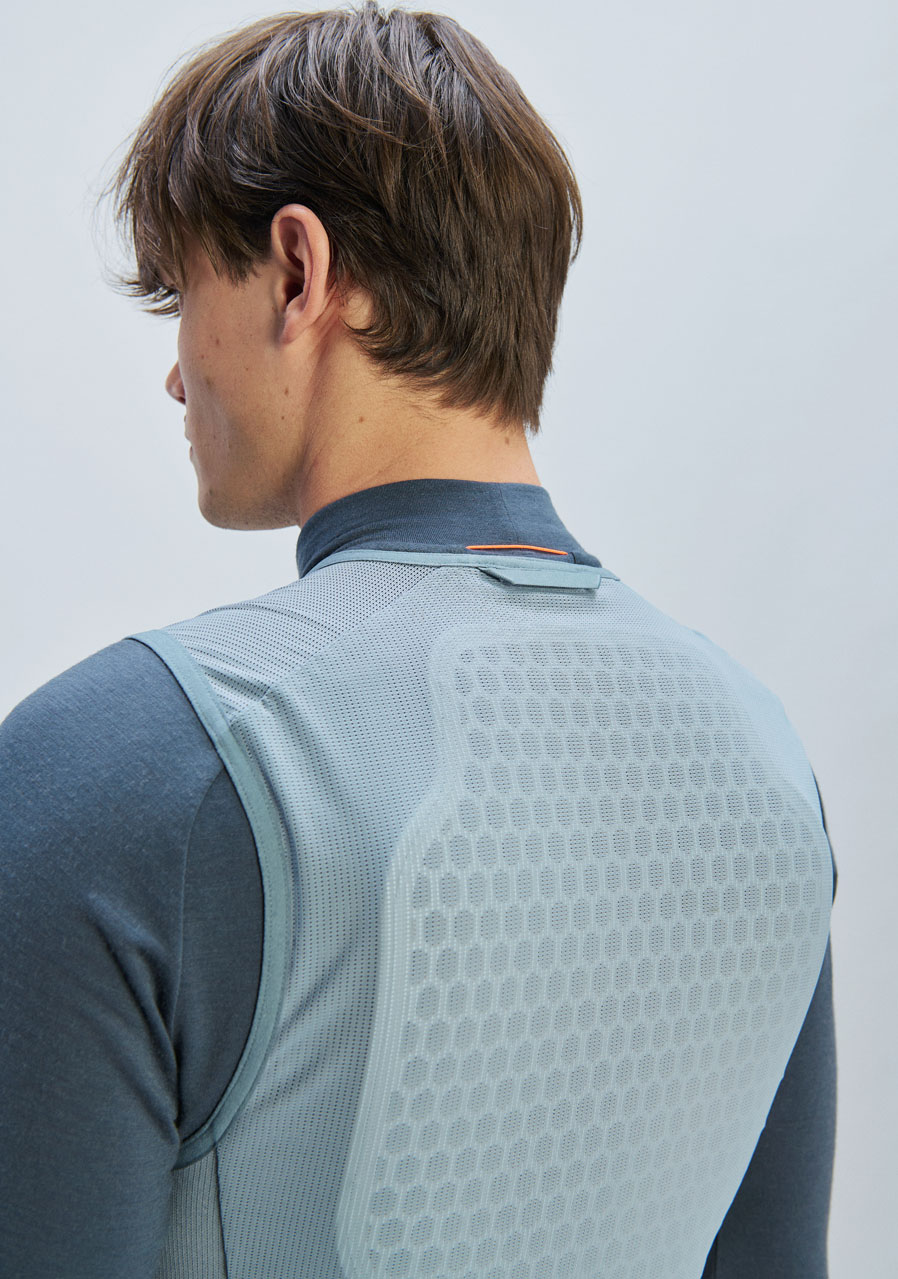 Parametry: Materiál: 80 % polyester, 20 % elastan Ochranný panel: VPD Air (viskoelastický polymer) Střih: přiléhavý pánský fit Ventilace: síťované panely po celé ploše Zapínání: přední zip Pás: elastický, nastavitelný Vlastnosti: lehký, prodyšný, flexibilní, nárazově absorbční Certifikace: EN 1621-2 Level 1 Barva: Granite Grey Styl: technický, sportovní Sezóna: All Season