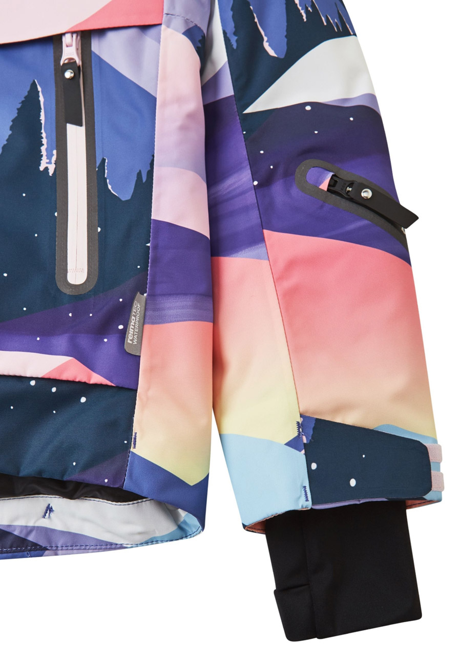 Dětská zimní bunda Reima Posio v odstínu Breezy Violet je navržena pro maximální pohodlí, teplo a ochranu během zimních dobrodružství. Vyrobena z funkčního materiálu s membránou Reimatec™, zajišťuje vynikající nepromokavost a prodyšnost, takže děti zůstávají v suchu a teple i při aktivním pohybu. Lehká, ale účinná syntetická izolace hřeje i ve vlhkém prostředí, zatímco podlepené švy a voděodolné zipy chrání před pronikáním vlhkosti. Odnímatelná kapuce, nastavitelné manžety, reflexní detaily a vnitřní kapsy dělají z bundy praktického a bezpečného společníka pro každodenní zimní nošení i horské výlety.