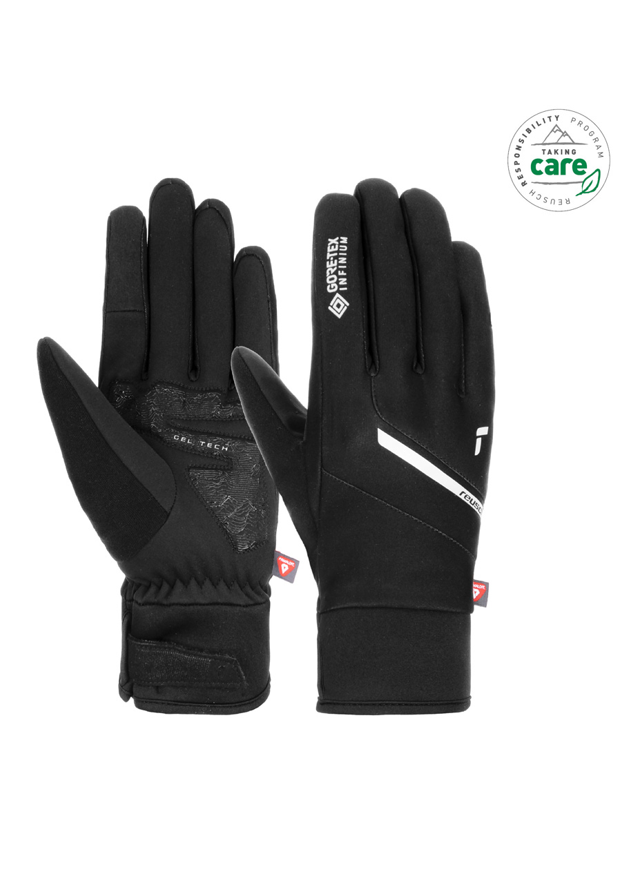 Rukavice Reusch Versa GORE-TEX INFINIUM™ LF v barevné kombinaci Black/Silver jsou perfektní volbou pro aktivní sportovce i každodenní nošení v chladném počasí. Technologie GORE-TEX INFINIUM™ zaručuje naprostou větruodolnost, vysokou prodyšnost a příjemný tepelný komfort při jakékoliv aktivitě. Lehký a pružný materiál zajišťuje přesné padnutí, volnost pohybu a vysokou citlivost prstů. Díky Touchscreen kompatibilnímu povrchu lze snadno ovládat chytré telefony či hodinky bez sundání rukavic. Moderní design s decentními logy Reusch podtrhuje jejich univerzální a sportovně-elegantní charakter.