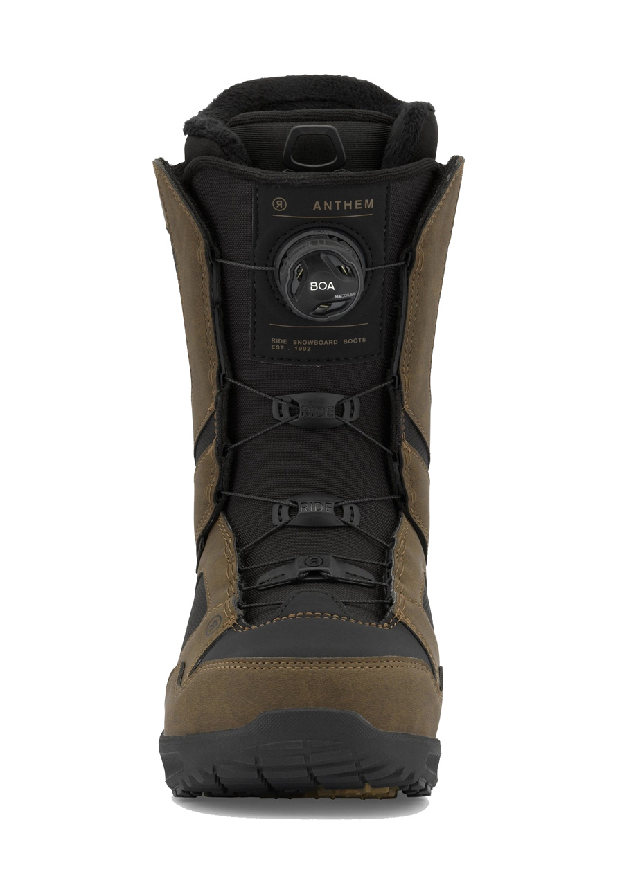 Pánské snowboardové boty RIDE Anthem BOA v hnědém provedení Brown nabízejí perfektní rovnováhu mezi výkonem, komfortem a spolehlivostí pro all-mountain ježdění. Konstrukce In2grated™ spojuje vnitřní a vnější část boty pro nižší hmotnost a přesnější fit. Utahovací systém H4 BOA® Coiler Fit System umožňuje rychlé a rovnoměrné utažení jedním otočením kolečka. Měkká vnitřní botička Intuition™ Plush Foam Liner se teplem přizpůsobí tvaru nohy, zatímco systém Lock Down™ Turbo fixuje vnitřní šněrování bez povolení. O odpružení a pohodlí při dopadech se stará mezipodešev +SLIME Midsole, zatímco podešev Grip Lite Sole zaručuje jistý krok na sněhu i ledu. Model Anthem BOA je určen pro jezdce, kteří hledají spolehlivou, pohodlnou a technicky propracovanou botu pro každodenní použití.