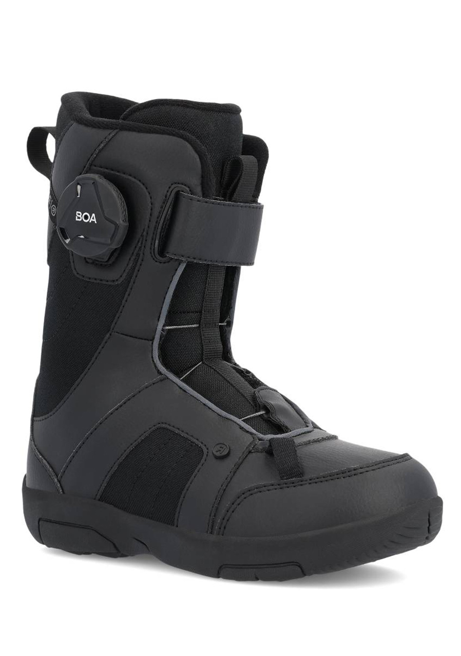 Snowboardové boty Ride Norris Boa v černé barvě jsou určeny pro nejmenší jezdce, kteří začínají objevovat kouzlo snowboardingu. Díky systému Boa® Fit je utahování i povolování boty velmi snadné a zvládnou ho i děti samy bez pomoci dospělých. Měkký flex usnadňuje první oblouky a poskytuje pohodlí i při celodenním nošení. Vnitřní botička z měkké pěny zajistí tepelný komfort a příjemný pocit, zatímco lehká podrážka zaručuje stabilitu a jistý krok při pohybu na sněhu. Model Norris je skvělou volbou pro dětské začátky díky kombinaci jednoduchosti, pohodlí a spolehlivosti.