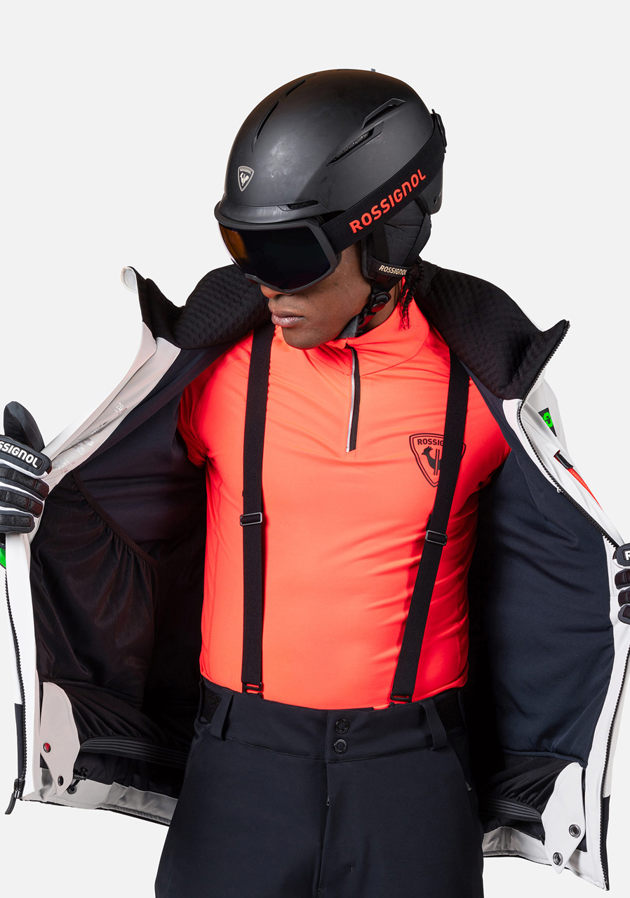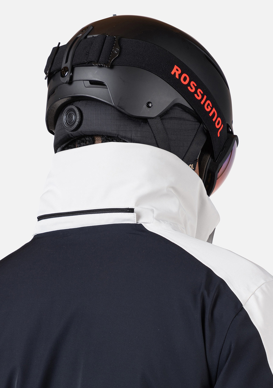 Funkce lyžaře: integrovaný sněhový pás, manžety s poutky na palec, větrací zipy, poutko na brýle