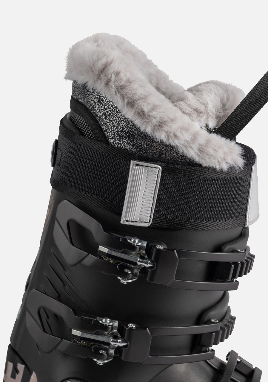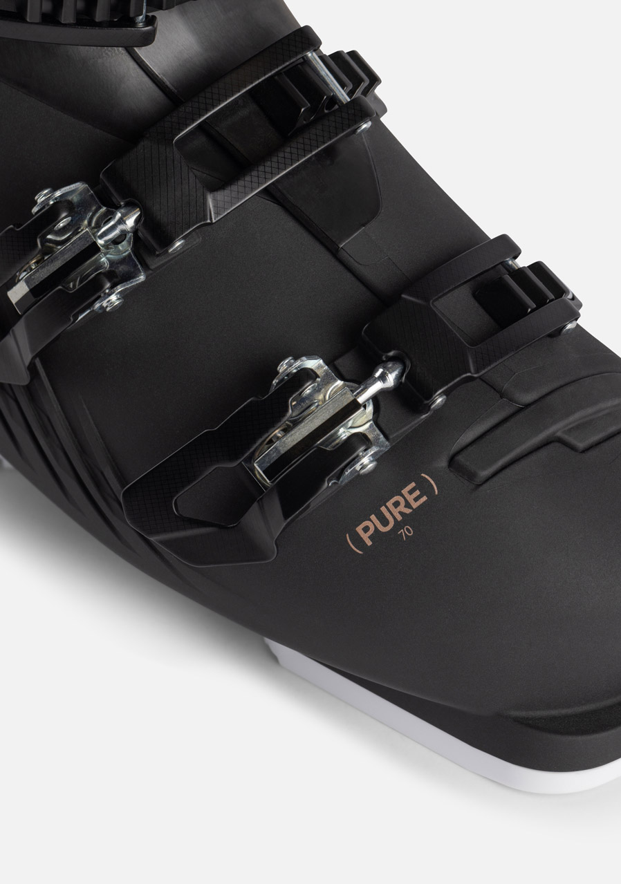 Dámské lyžařské boty Rossignol PURE 70 jsou ideální pro lyžařky, které hledají pohodlí a kontrolu při celodenním lyžování. Nový skelet je lehký a efektivně přenáší energii na lyže díky Generative Design Grid, který optimalizuje tvar boty pro lepší výkon a sníženou hmotnost. Se šířkou 102 mm jsou boty pohodlné a flexibilní, což je ideální pro rekreační lyžování. Vnitřní botičky Wintherm® poskytují teplo, zatímco speciální tvar komínu zabraňuje tlaku na lýtkový sval.