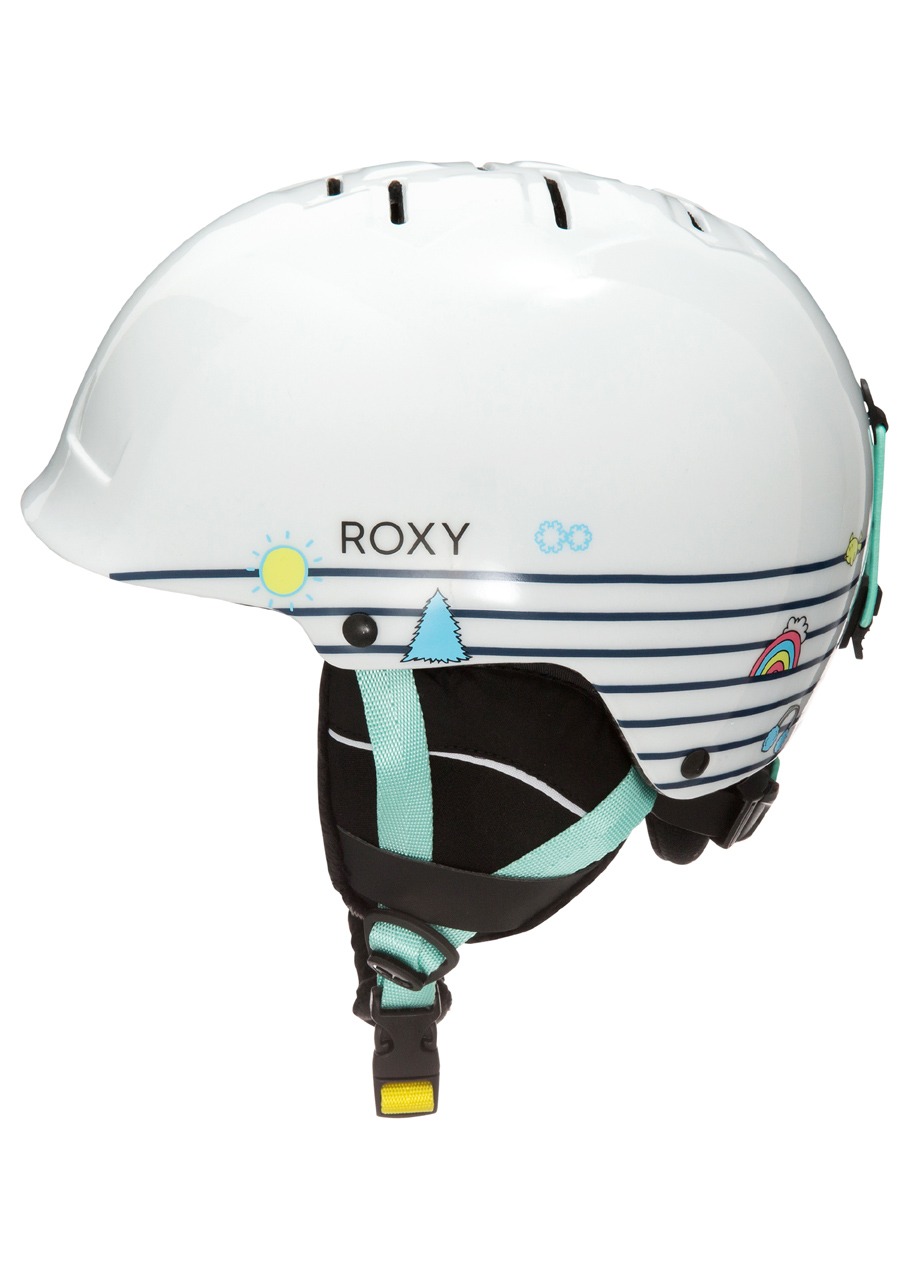 Upínání Helma má měkce polstrovaný pásek pod bradou, který zabraňuje odírání, a poutko pro uchycení brýlí v zadní části.
