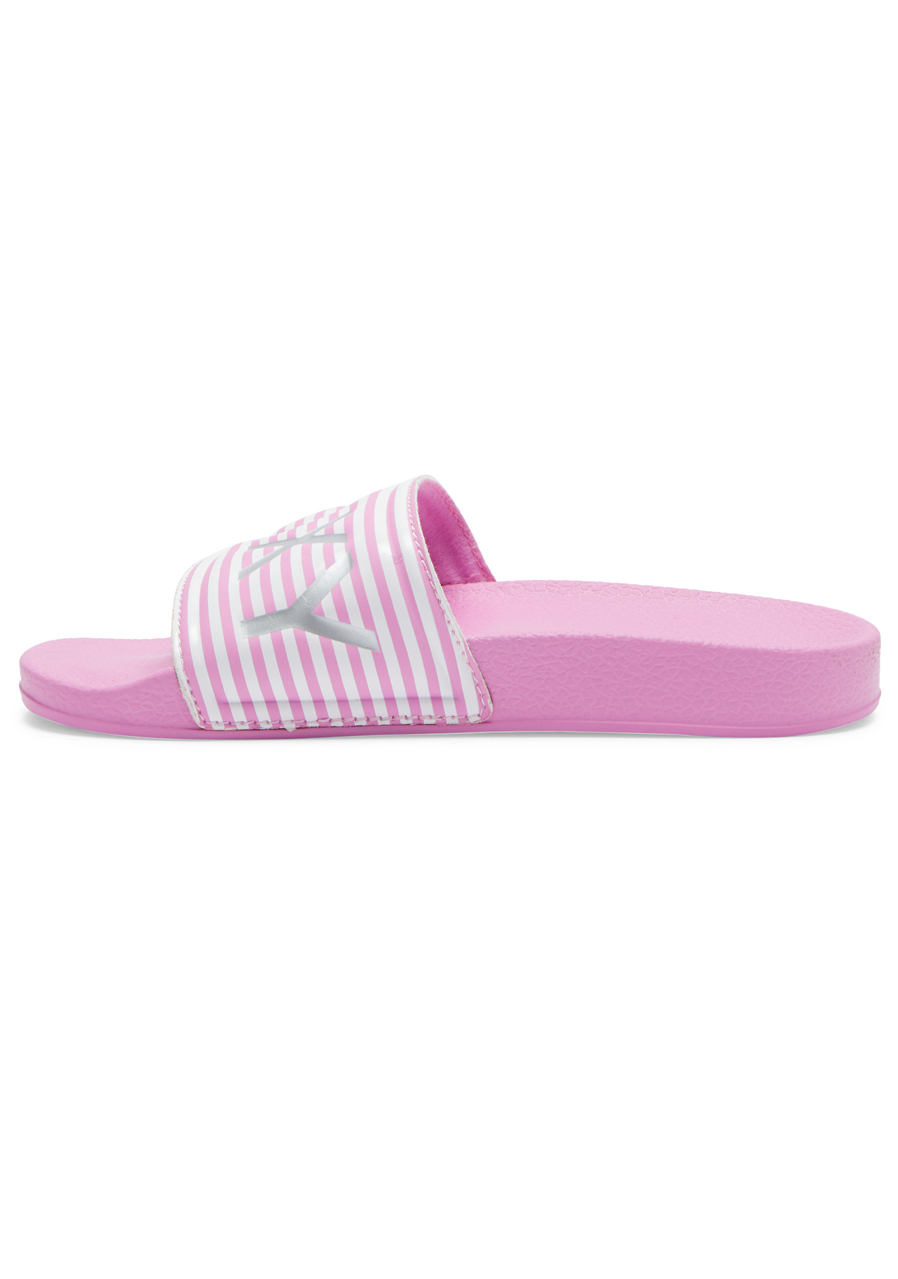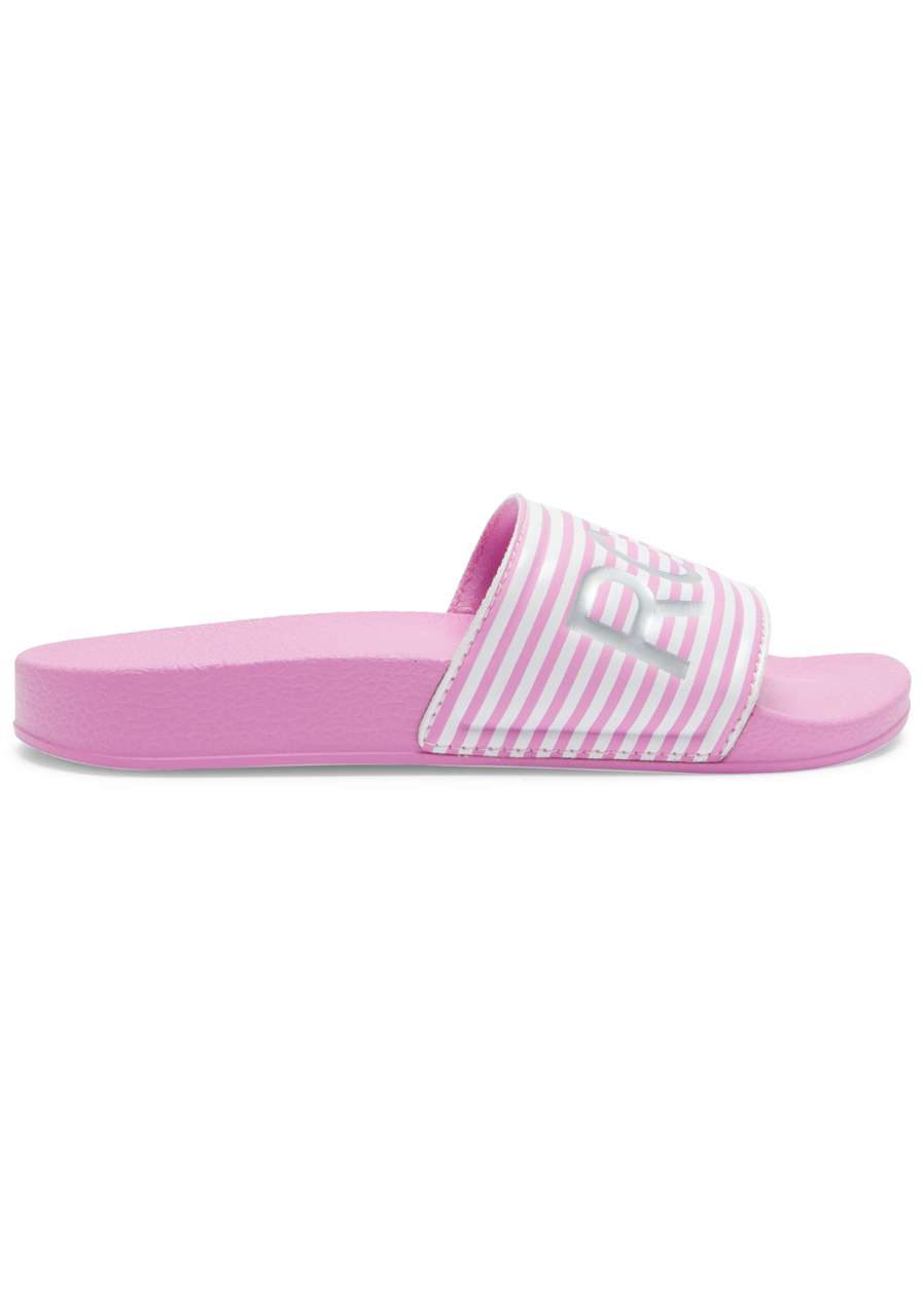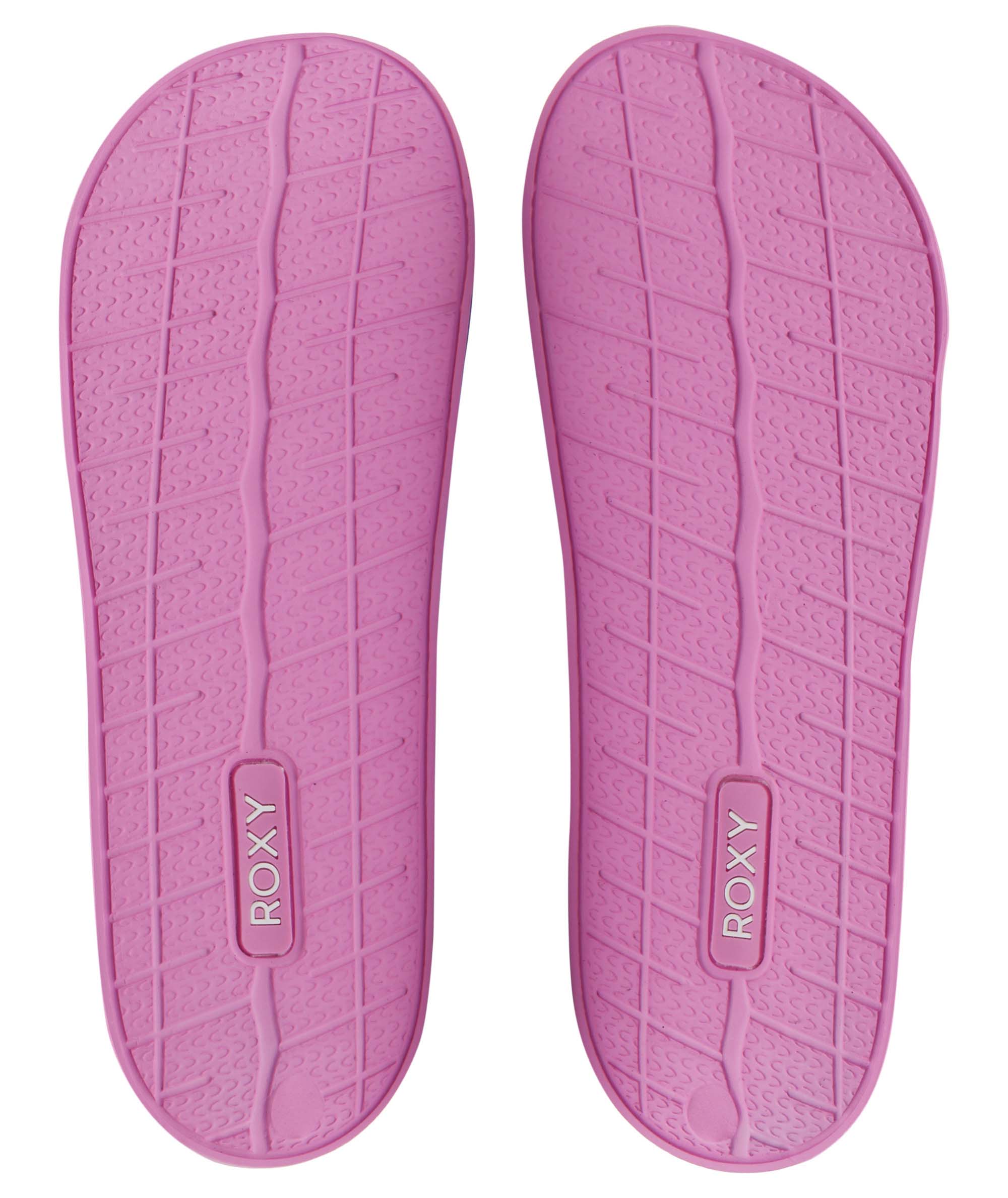 Pohodlné dětské volnočasové pantofle Roxy v růžové barvě. Lehce tvarovaná měkká stélka nezpůsobuje otlačeniny ani puchýře. Gumová podrážka zaručuje pohodlnou chůzi. Přes nárt široký pás a nápisem Roxy, což je typické pro tuto značku. Vhodné jak do města tak k vodě, kdy pantofle vydrží i náročné dětské zacházení