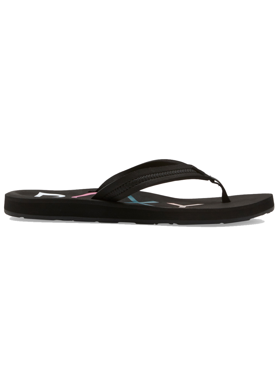 Elegantní nazouvací pantofle ve stylu žabky Roxy Vista, jsou vodné do horkých letních dní, kdy oceníte vzdušnost a pohodlí. Textilní páska přes nohu je jemná a nezpůsobuje otlačeniny. Zajímavý a moderní potisk je na vnitřní straně a decentní logo na přední části. Vyrobené z kvalitního syntetického materiálu. Vyrazit v nich můžete nejen k vodě, ale i na delší procházku po městě, bez starostí o pohodlí.