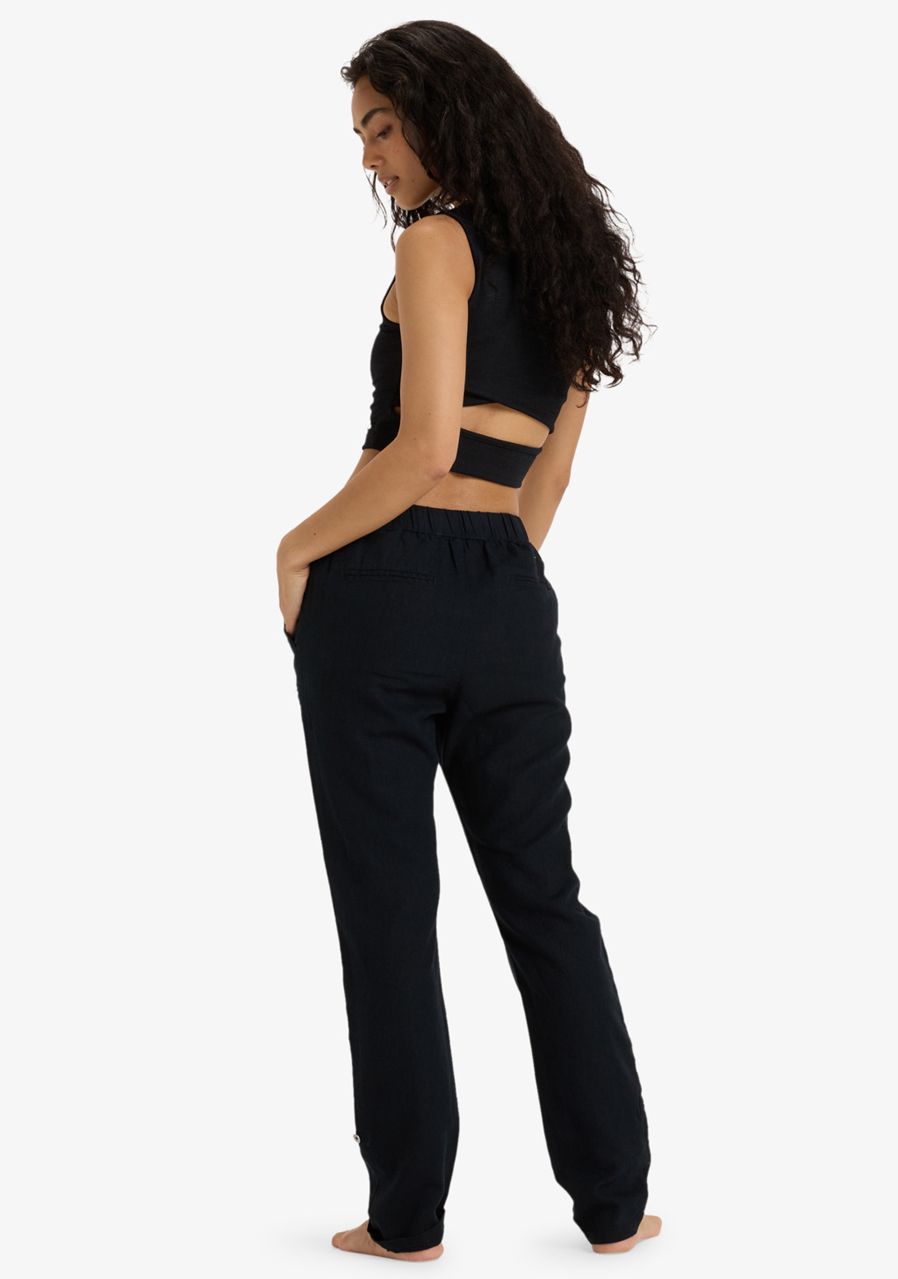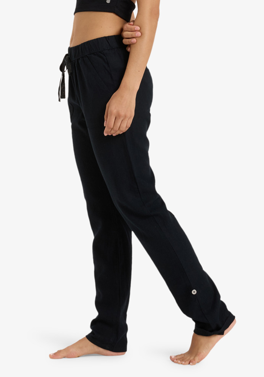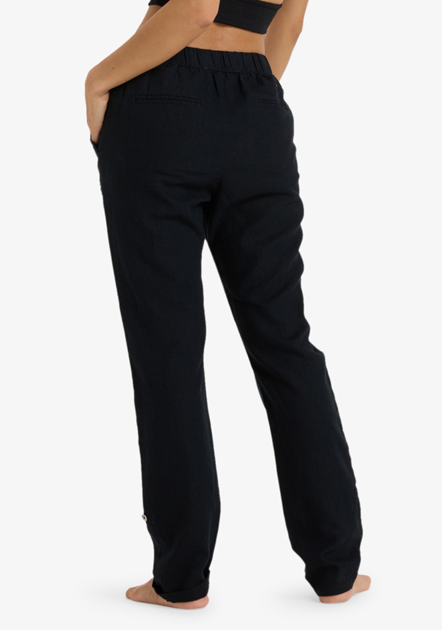 Dámské kalhoty Roxy On The Seashore v černé barvě jsou ideální volbou pro letní dny i volnočasové nošení. Lehký a prodyšný materiál zaručuje maximální pohodlí, zatímco volnější střih s elastickým pasem a nastavitelnou šňůrkou umožňuje perfektní přizpůsobení postavě. Kalhoty mají rovný střih nohavic a praktické boční kapsy, což podtrhuje jejich ležérní a pohodlný styl. Díky minimalistickému designu je snadno zkombinujete s tričkem či topem pro uvolněný, moderní outfit.