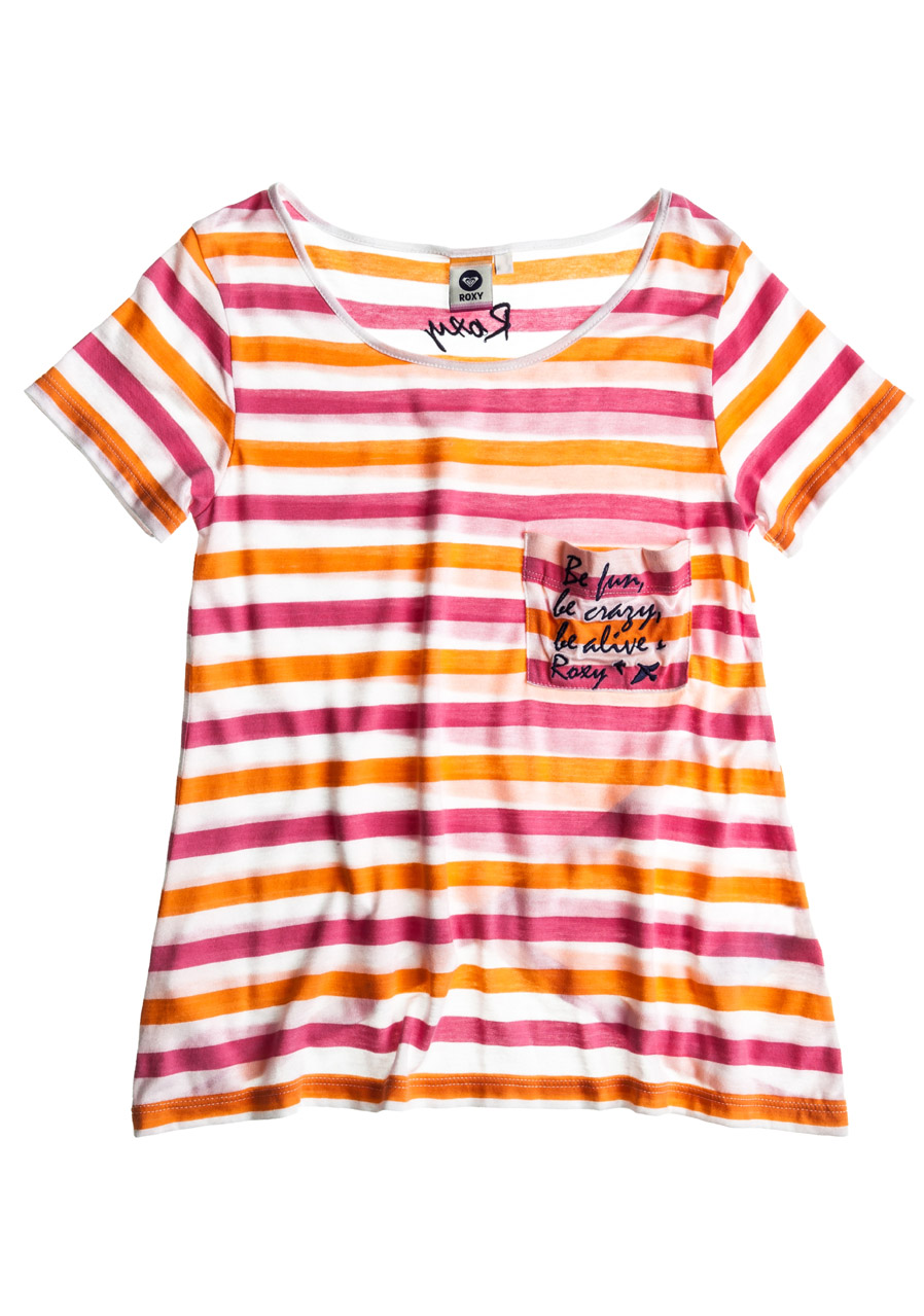Dětské dívčí tričko Roxy Spilling s kulatým výstřihem a pruhovaným vzorem. Zajímavý kousek, který ocení každá mladá dívka. Vdušný a lehký materiál s krátkými rukávy je příjemný na nošení a nebrání v aktivním pohybu. Malá kapsička na přední straně.