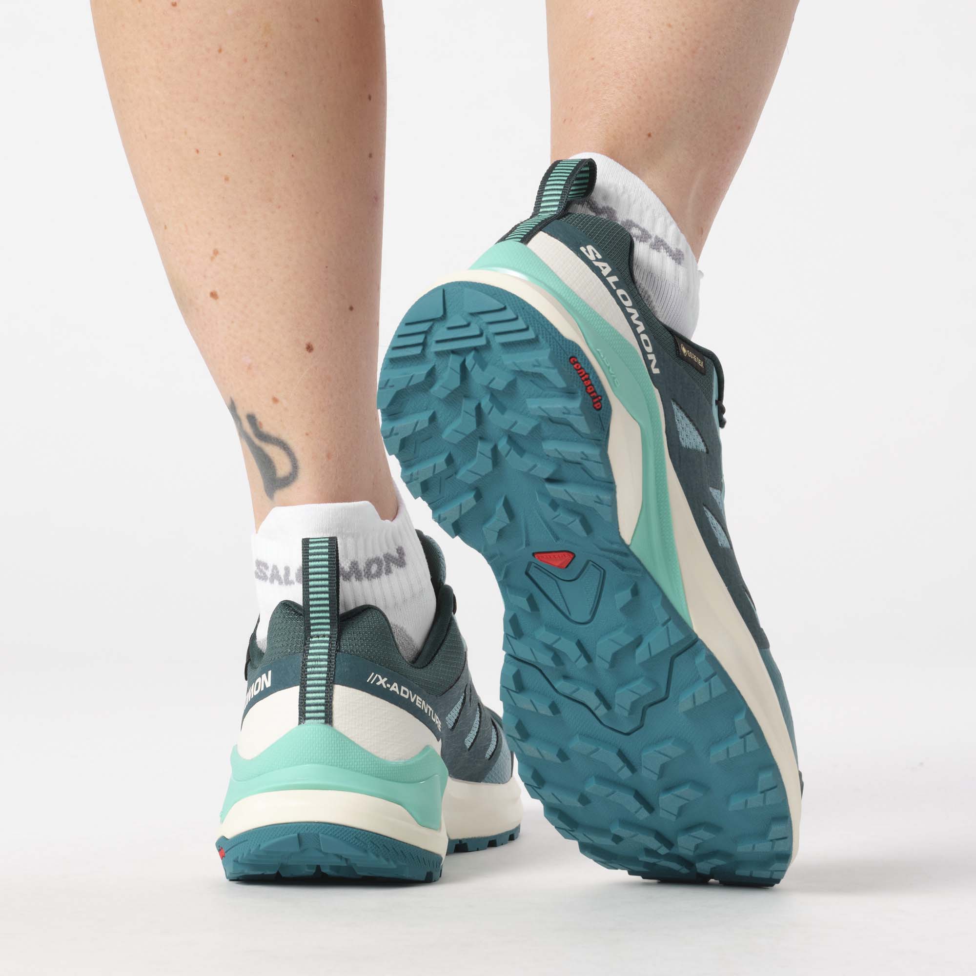 Salomon X-ADVENTURE GTX W jsou dámské trekové boty určené pro všestranné outdoorové využití – od lehkých túr a procházek v přírodě až po víkendové výlety v proměnlivém počasí. Nabízejí ideální kombinaci pohodlí, nízké hmotnosti a odolnosti. Voděodolná membrána GORE-TEX® udrží nohy v suchu, zatímco podešev All Terrain Contagrip® zajistí výbornou trakci na různorodém povrchu. Díky dámskému střihu a technologii SensiFit™ bota skvěle padne a drží na noze i při celodenním nošení.