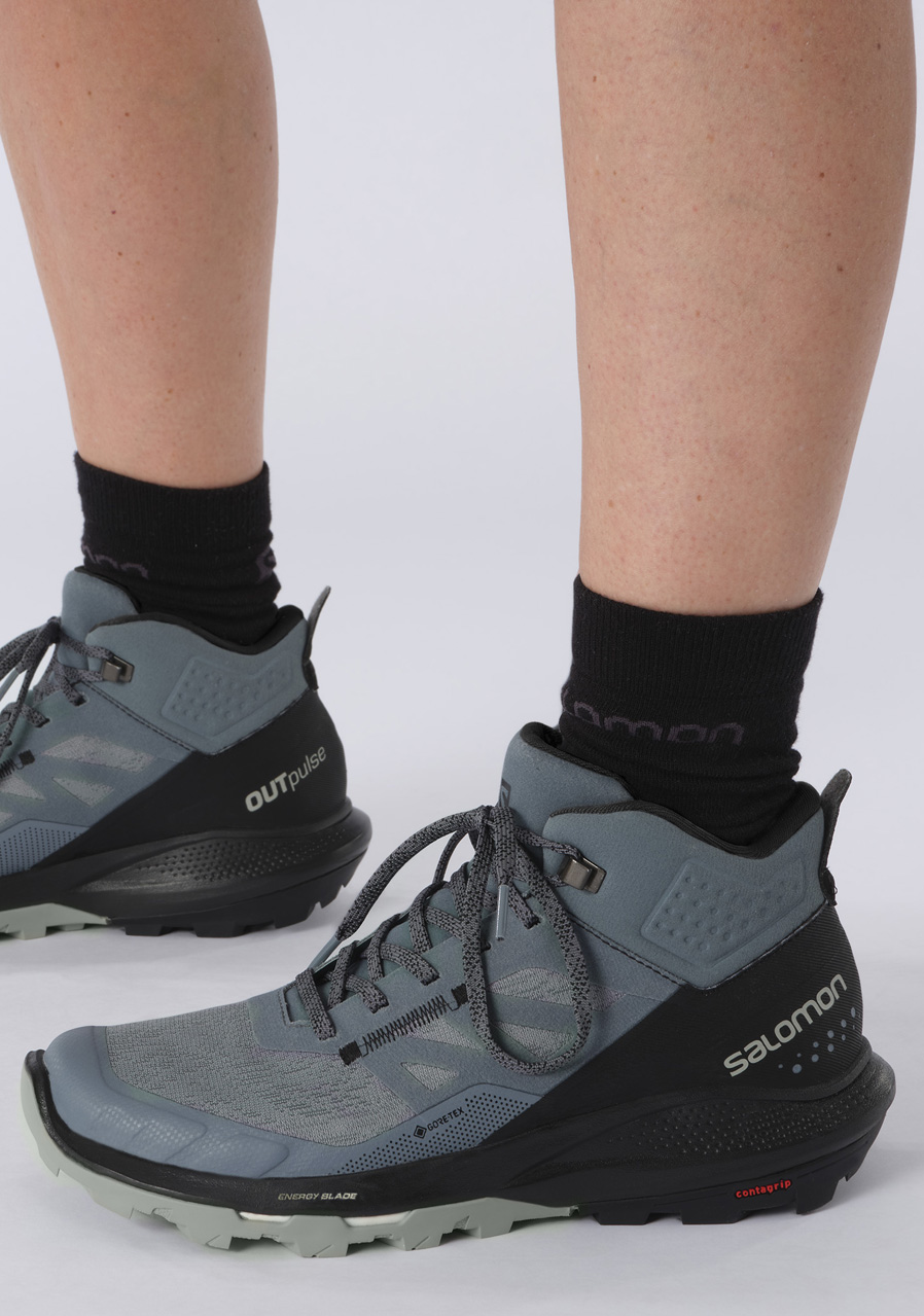 Popis:Dámské boty Salomon OUTPULSE MID GTX W – Stoweaway / Black / White Rose