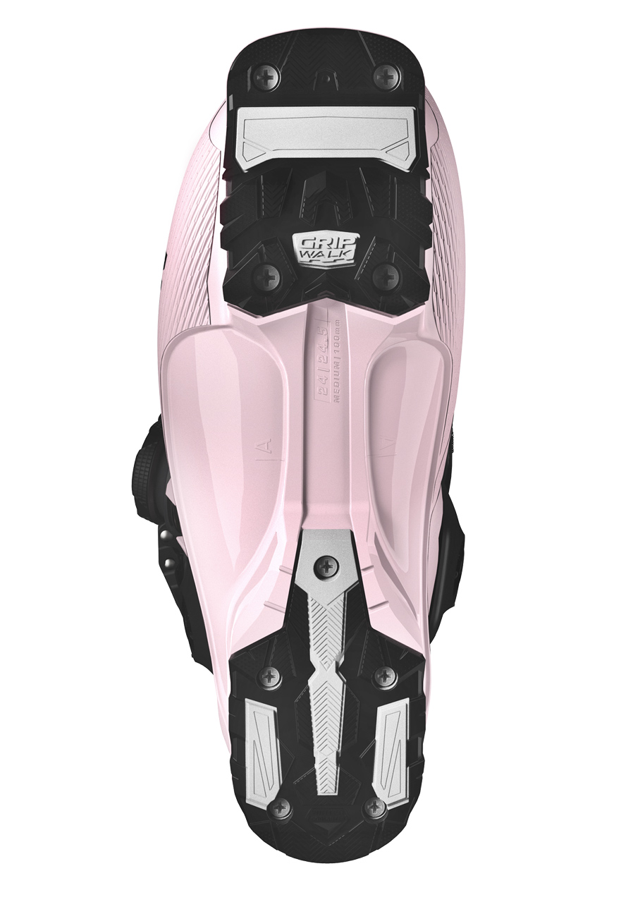 Technické parametry Flex index: 95 Šířka skeletu: 100 mm (Medium Fit), možnost bootfittingu Materiál skeletu: Polyamid s výztuhou Coreframe Přezky: 2× hliníková přezka + 1× BOA® kolečko Botička: Women’s CustomFit 4D Sport Podešev: GripWalk (vyměnitelná) Kompatibilita: GripWalk a ISO 23223 Hmotnost: cca 1700 g (vel. 24.5)