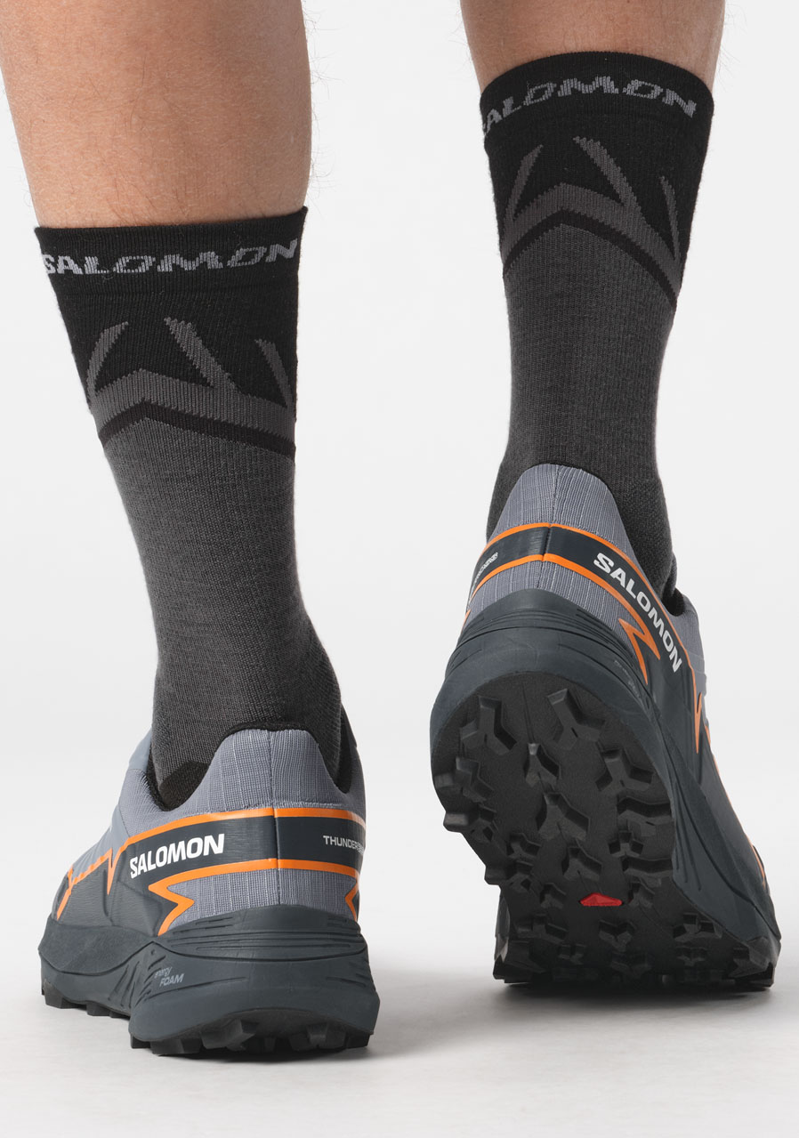 Salomon THUNDERCROSS GTX spojují svižnost běžecké DNA s robustní ochranou a trakční podešví vhodnou pro každý terén. Membrána GORE-TEX® zajišťuje, že nohy zůstanou suché i během brodění mokrými úseky, zatímco agresivní vzorek Contagrip® MA poskytuje maximální záběr v bahně, na vlhkých kamenech i štěrkových cestách. Technologie Profeel Film™ chrání chodidlo před ostrými kamínky a kořeny, a lehká EnergyCell™ mezipodešev tlumí nárazy bez ztráty dynamiky.