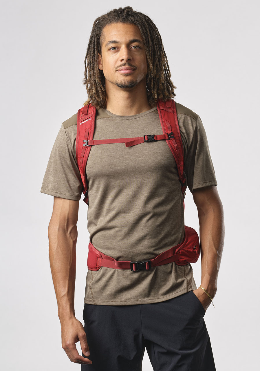 Funkce Lehký a prostorný batoh pro delší výlety nebo vícedenní použití Polstrovaný zádový panel a ramenní popruhy s 3D síťovinou Hlavní komora na zip s vnitřní kapsou na hydrovak Rozšiřitelná horní kapsa s přístupem shora Přední kapsa na zip Boční strečové kapsy Nastavitelný hrudní popruh Bederní pás s kapsami Reflexní prvky Poutko na vybavení Kompatibilní s hydrovakem (do 2 l, není součástí)