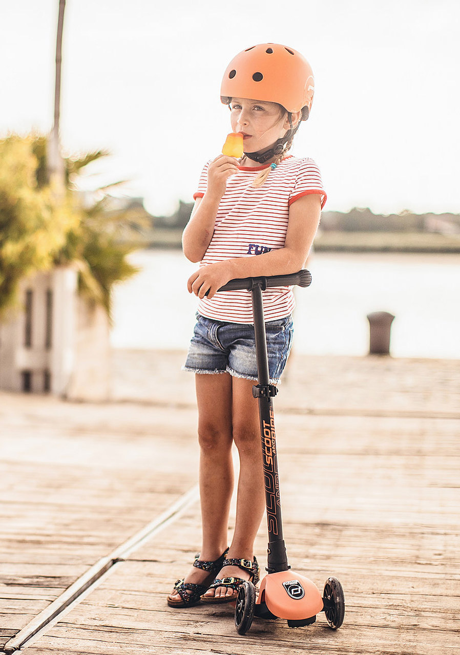 Stylová, bezpečná a pohodlná – dětská helma Scoot & Ride ve velikosti S/M (51–55 cm) v jemném broskvovém odstínu je ideální volbou pro děti, které si užívají jízdu na odrážedle, koloběžce nebo kole. Nabízí pokročilou ochranu hlavy, moderní funkce a krásný design, který si děti zamilují.