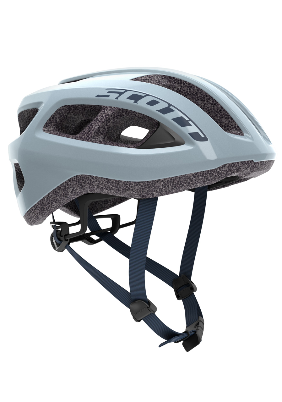 Silniční cyklistická helma s nízkou hmotností a odnímatelným štítkem - odolná In-Mold konstrukce s EPS jádrem pro lepší absorpci nárazů - upínací systém MRAS SOLO pro pohodlné a přesné nastavení - optimalizované ventilační kanálky pro efektivní proudění vzduchu - moderní světle modrá barva Glace Blue