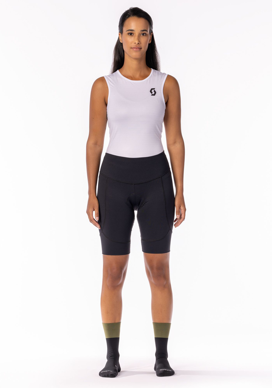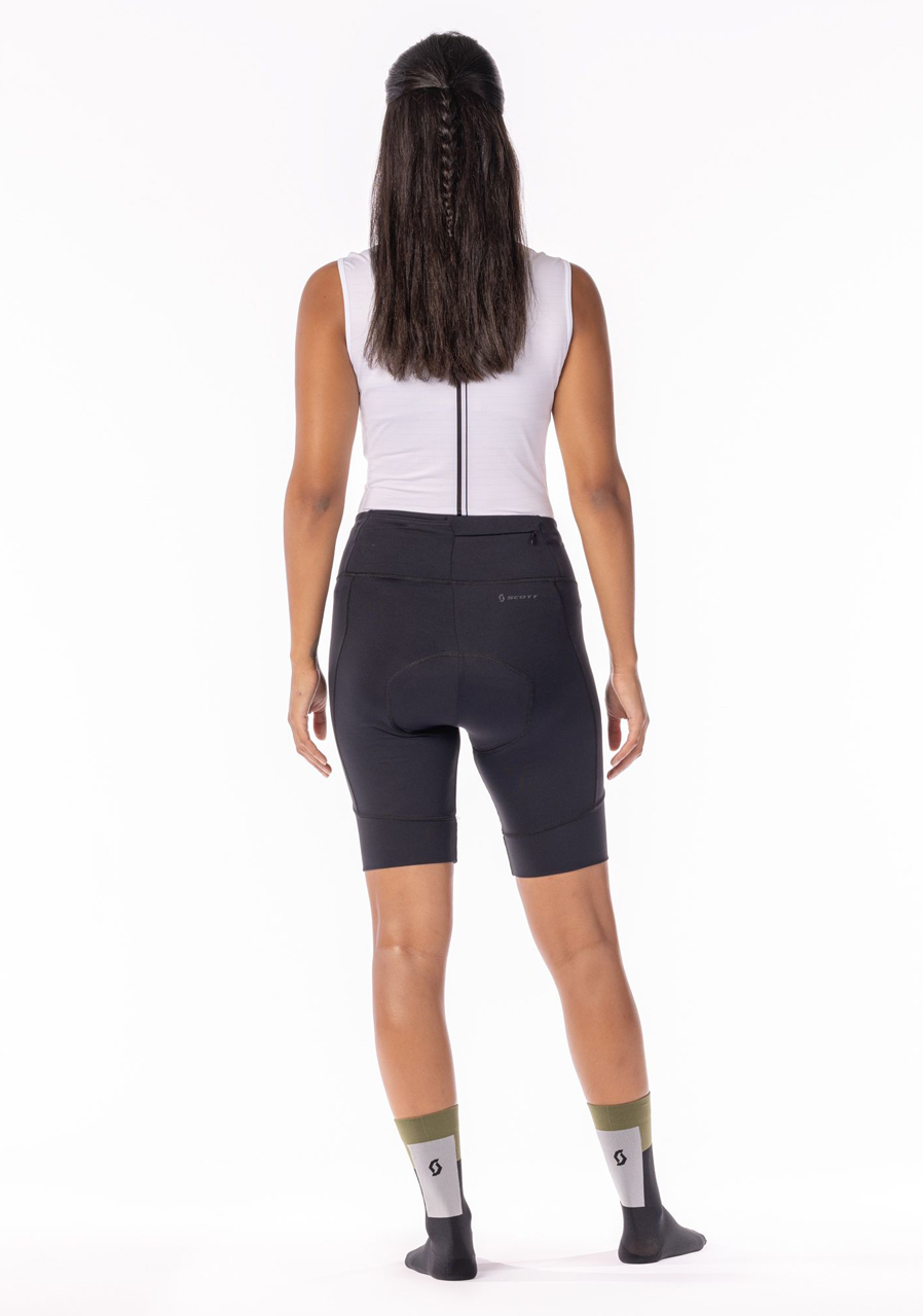 Šortky SCOTT Endurance 10 s prvotřídní dámskou cyklistickou vložku SCOTT +++ Pro a elastickým pasem jsou na kolo ještě pohodlnější. Velmi praktické zásluhou 2 kapes, z toho jedné na zip.