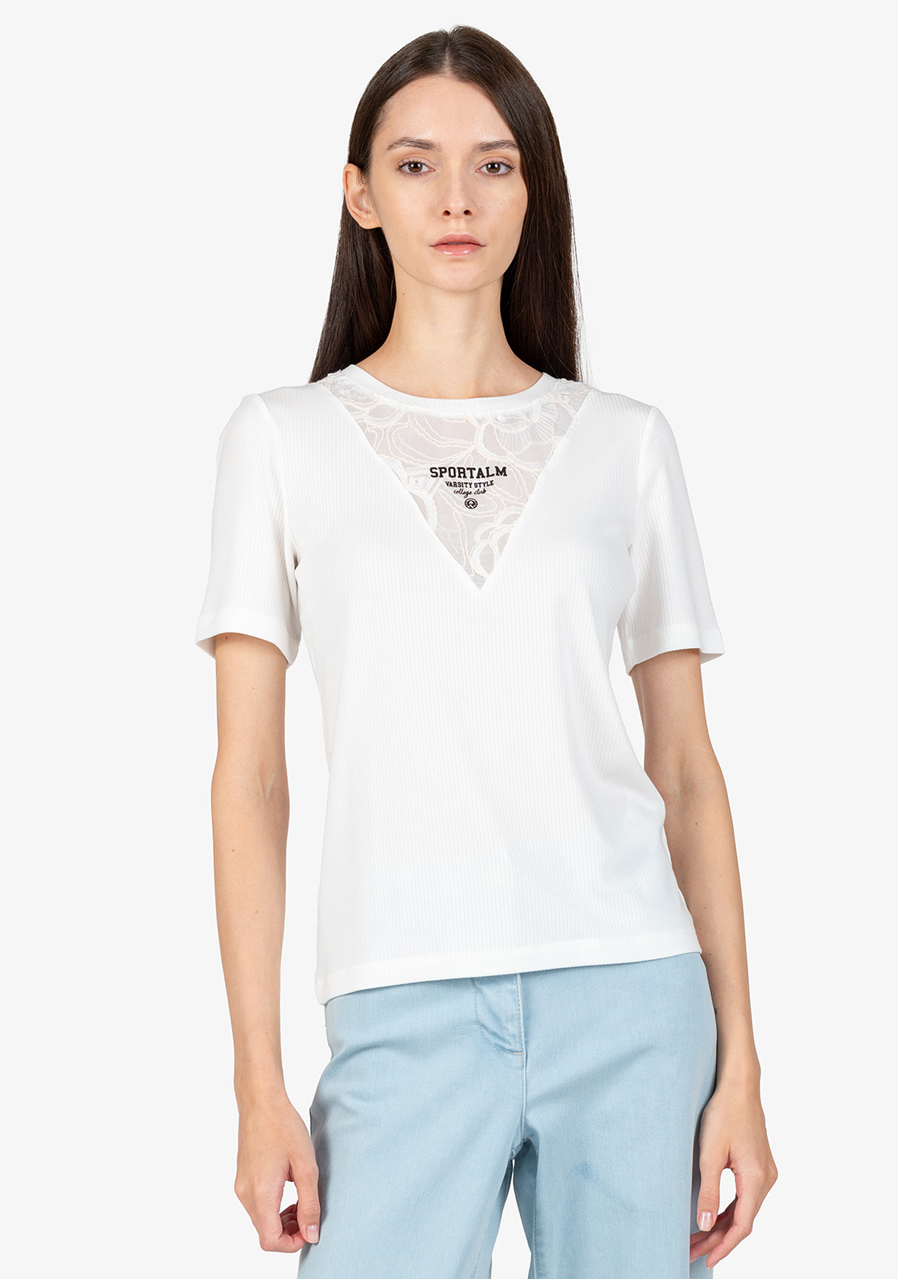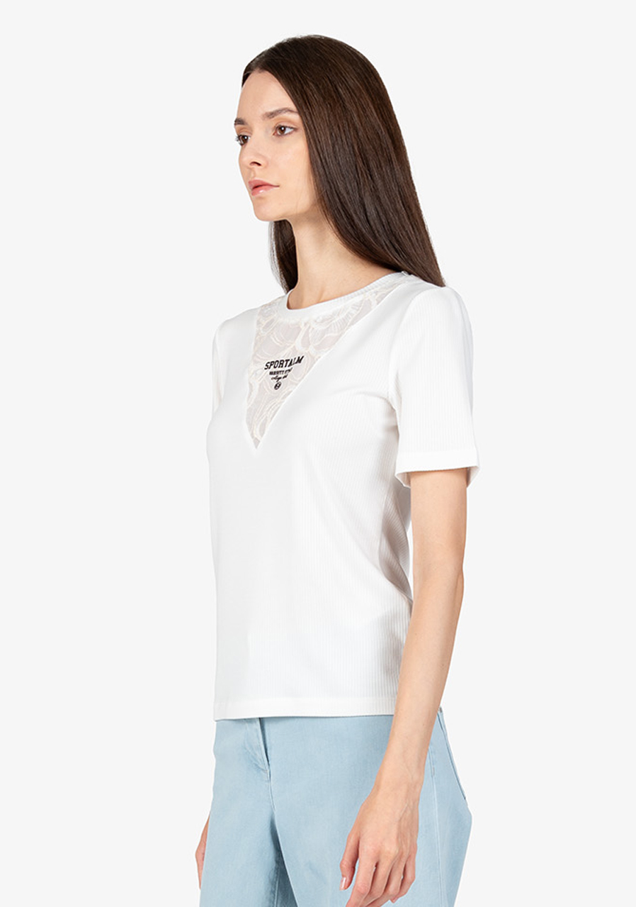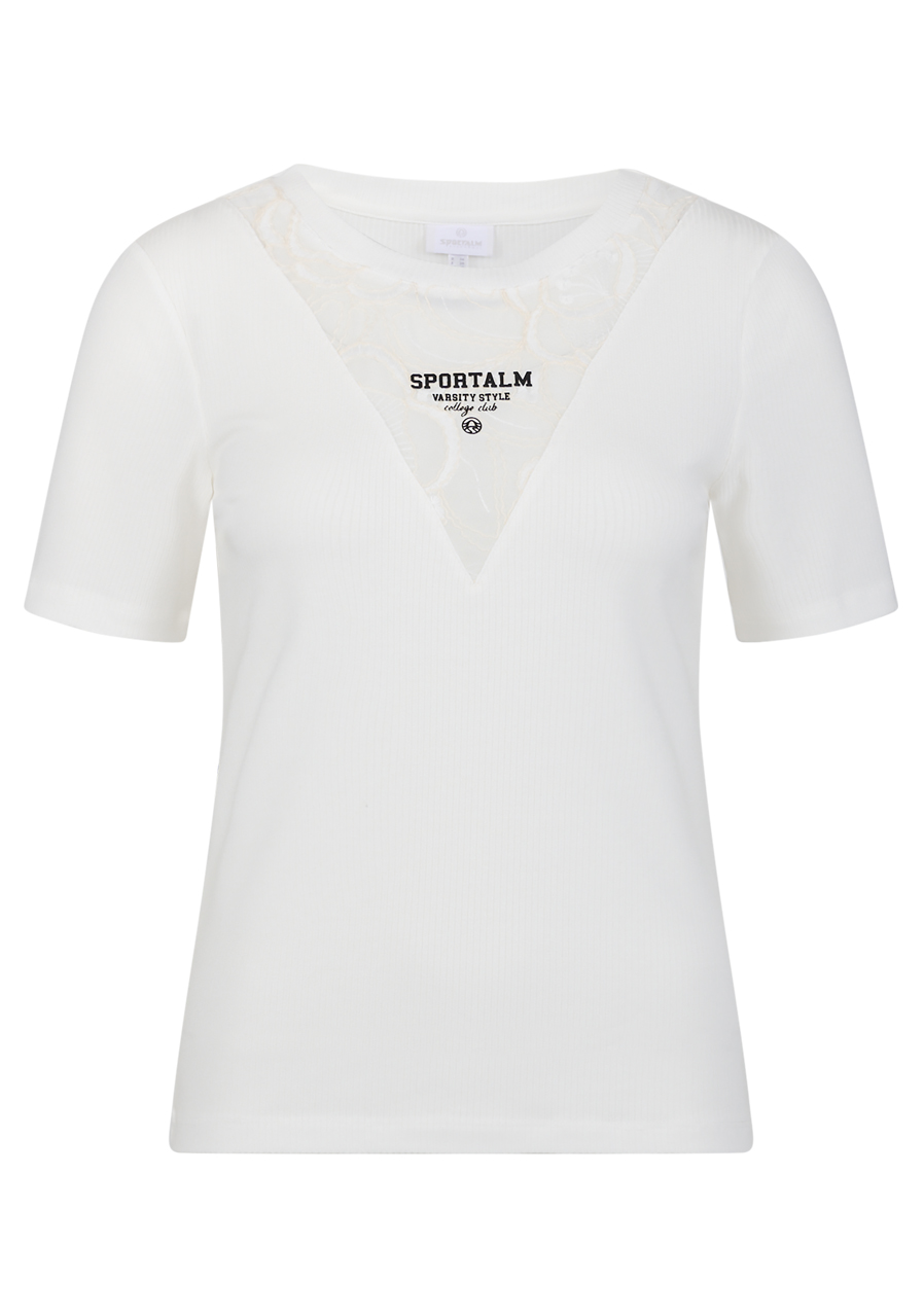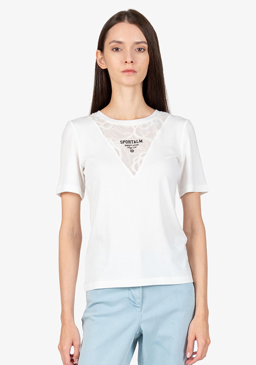 Další parametry: Vzor: květinová průhledná krajka. Střih: přiléhavý. Styl: ženský, elegantní. Výstřih: kulatý. Rukávy: krátké rukávy. Přednosti: krajková vsadka s 3D potiskem Sportalm. Toto tričko je ideálním doplňkem do každého šatníku, který přidá šarm a styl do vašeho každodenního outfitu.