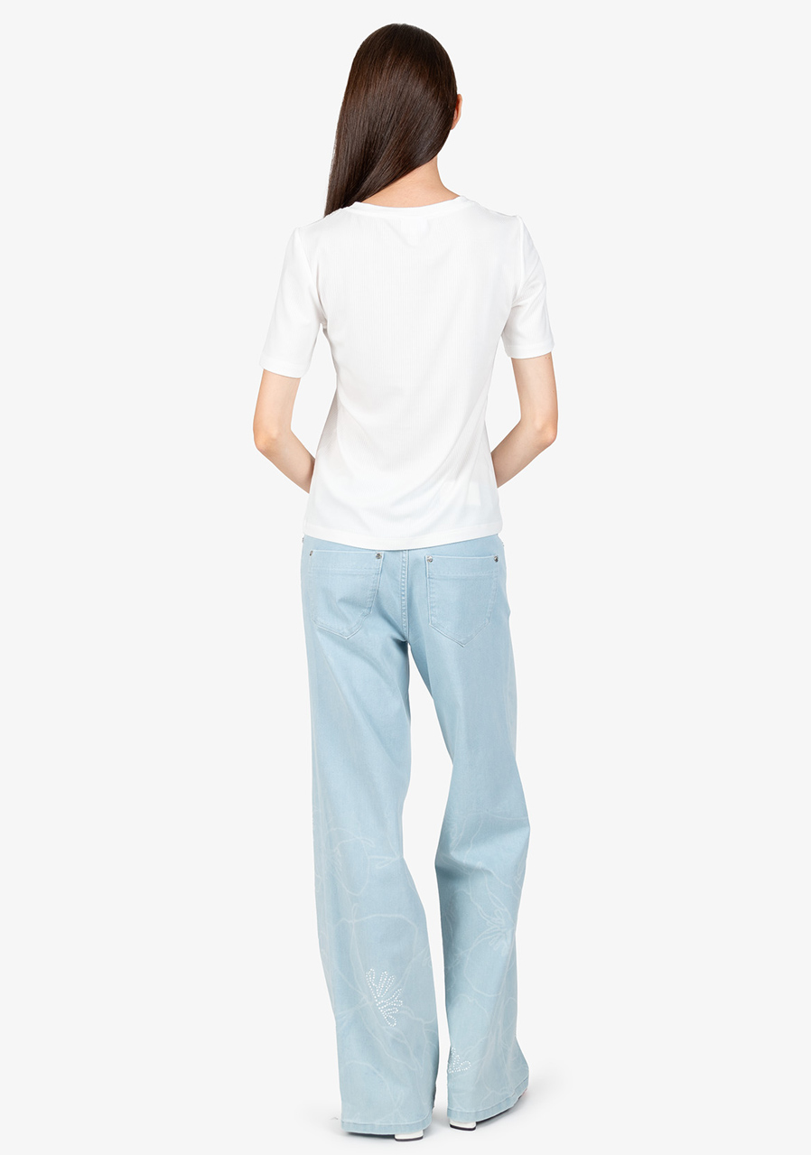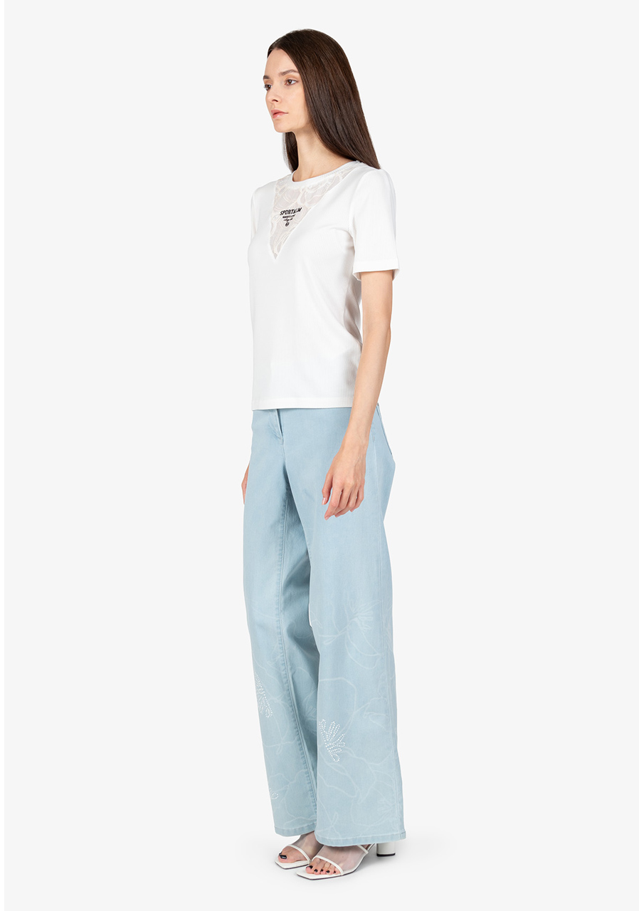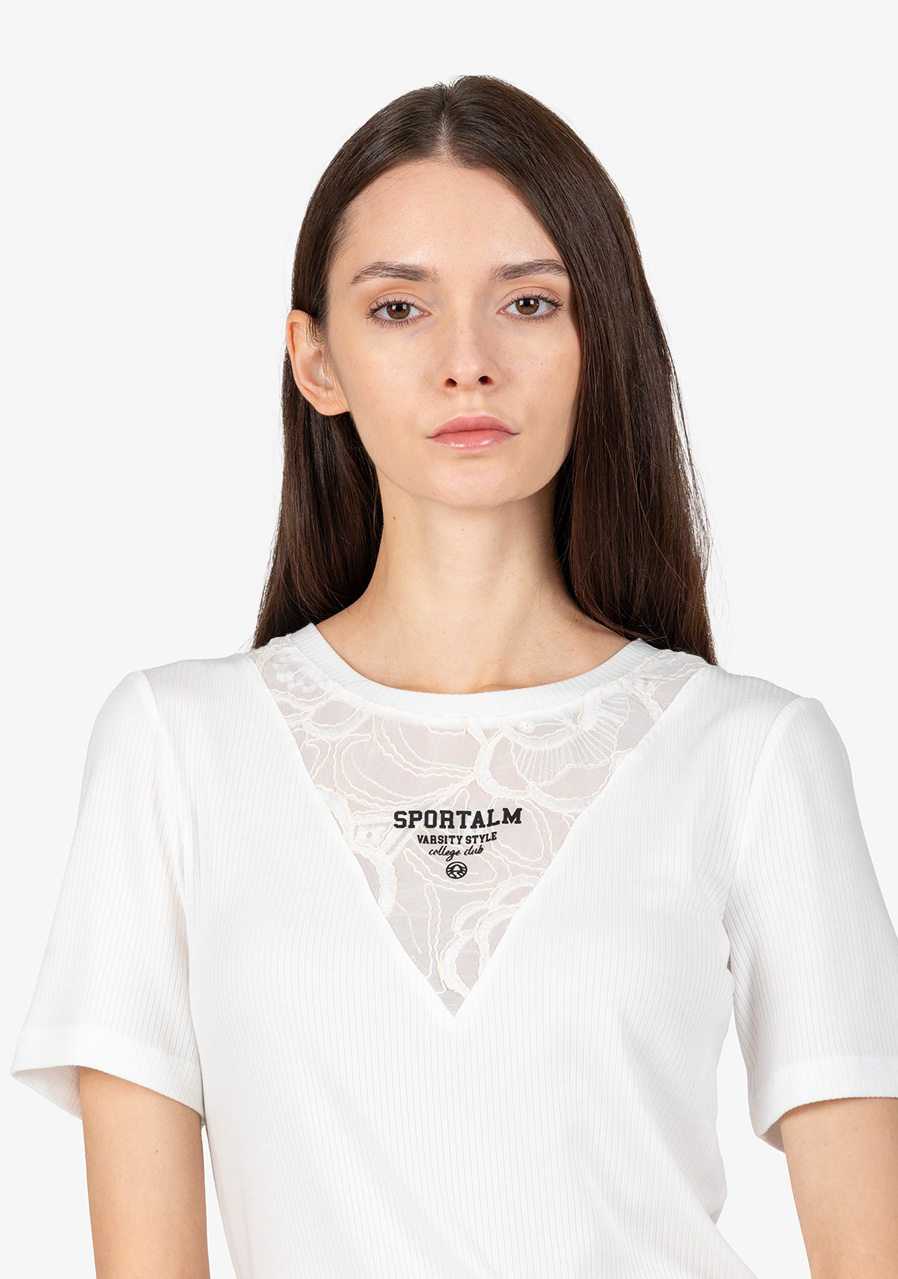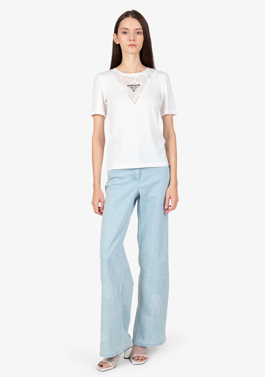 Další parametry: Vzor: květinová průhledná krajka. Střih: přiléhavý. Styl: ženský, elegantní. Výstřih: kulatý. Rukávy: krátké rukávy. Přednosti: krajková vsadka s 3D potiskem Sportalm. Toto tričko je ideálním doplňkem do každého šatníku, který přidá šarm a styl do vašeho každodenního outfitu.