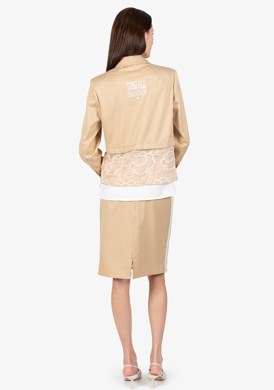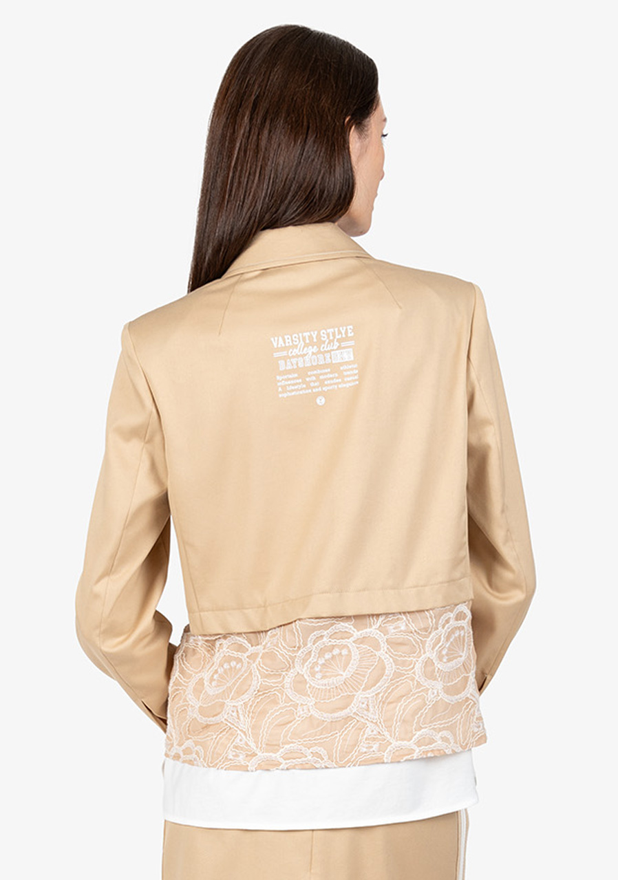 Tato stylová a sportovně elegantní bunda Sportalm kombinuje moderní design s ženskými detaily. Jemná květinová krajka dodává sofistikovaný nádech, zatímco krátký střih lichotí postavě a vytváří trendy siluetu. Košilový límeček a kontrastní prošívání na manžetách a límci dodávají bundě jedinečný vzhled. Díky kvalitní bavlněné směsi je nejen pohodlná, ale i příjemná na nošení. Stylový krajkový detail na lemu podtrhuje celkovou eleganci tohoto modelu. Perfektní volba pro ženy, které chtějí spojit sportovní styl s nadčasovou elegancí.