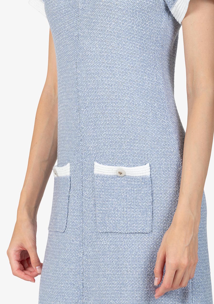 Letní pletené šaty Sportalm Björn 550196 Blue Marguerite představují perfektní kombinaci stylu a pohodlí pro teplé dny. Díky lichotícímu střihu, který se přizpůsobí postavě, a volnějšímu spodnímu lemu, tyto šaty nabízejí ležérní, ale zároveň ženský a moderní vzhled. Šaty mají výrazný sexy rozparek uprostřed přední části a jsou vyrobeny ze směsi různých pletených přízí pro unikátní texturu. Krátké rukávy zakončené flitrovou přízí přidávají na originalitě, zatímco našité kapsy se zapínáním na knoflík dodávají praktický prvek.