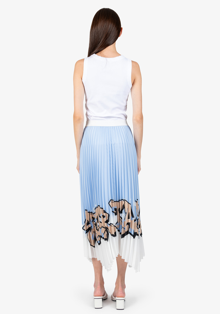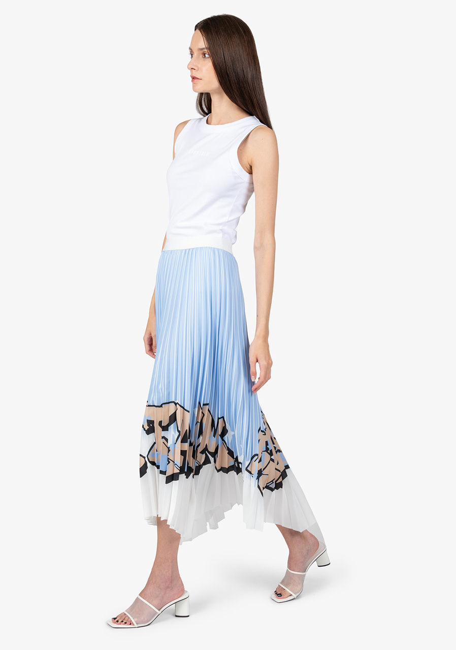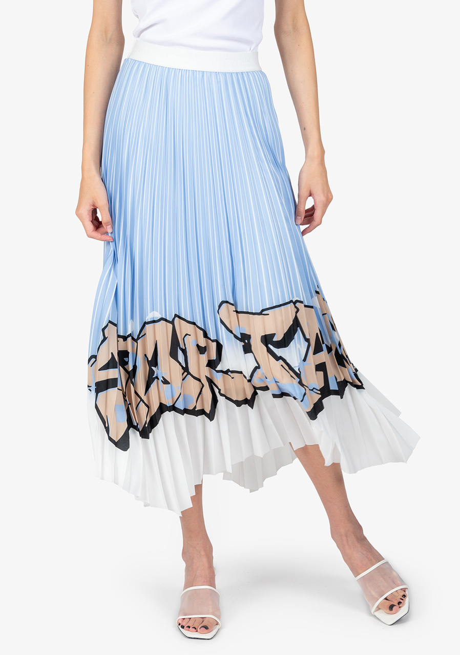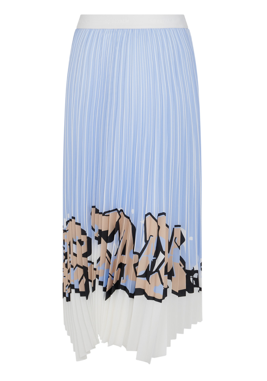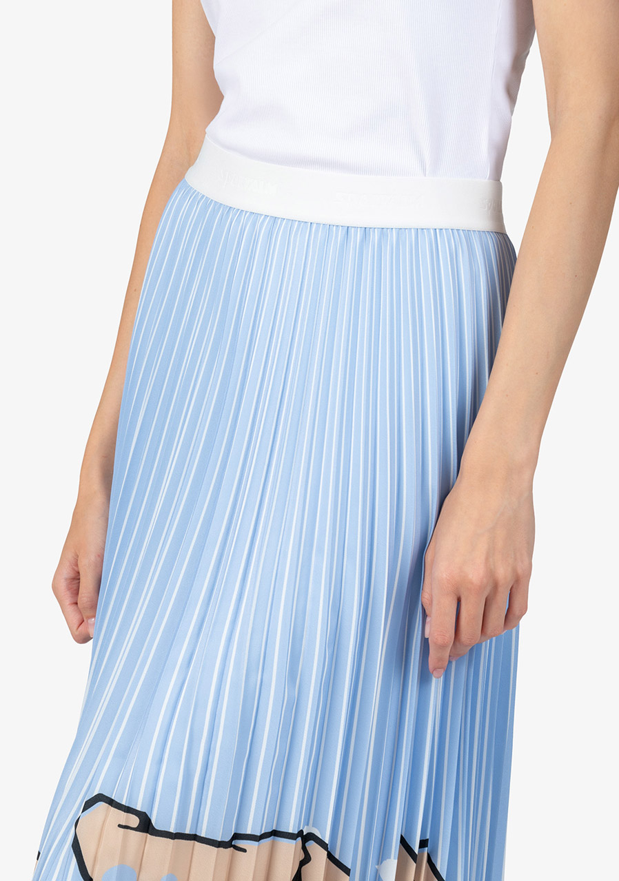 Nádherná plisovaná sukně Sportalm Blanka 600174 Blue Marguerite je dokonalým kouskem, který upoutá pozornost svým drzým spodním lemem a výrazným celoplošným potiskem. Kombinuje elegantní sklady s moderním volným střihem a přináší vašemu outfitu stylový, módní a poutavý nádech. Vyrobena z lehkého tylu s elastickým pasem a vyraženým logem Sportalm, sukně je nejen komfortní, ale i snadno nositelná.