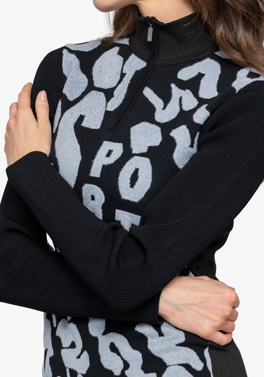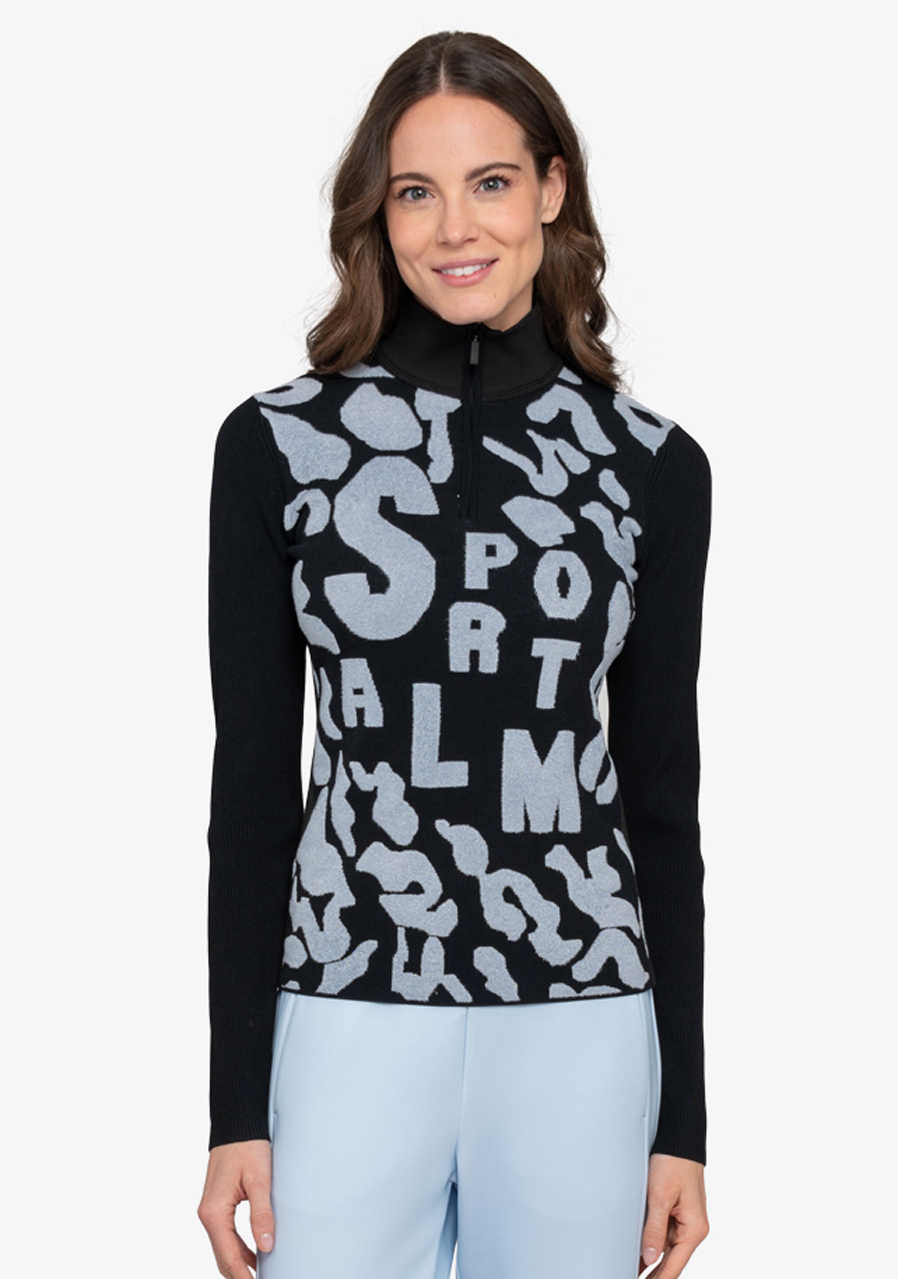 Materiál: 85% viskóza, 15% elastan – Měkký a pružný materiál pro maximální pohodlí. Design: Kombinace technického viskózového polyesteru s žinylkovou přízí a lurexem pro elegantní a stylový vzhled. Přední část: Vyvýšený nápis Sportalm se žakárovým Leo motivem zvýrazněný speciální high-low technikou. Zadní část: Vyrobena z technického dresu s jednoduchým vzhledem, doplněná transferovým potiskem nápisu Sportalm na zádech. Rukávy: Vyrobené z měkčího žebrovaného úpletu, který dodává roláku měkkost a příjemný pocit při nošení. Stojáček: Dodává roláku moderní vzhled a chrání před chladem. Délka zad: Velikost 36 má délku zad 60,0 cm. Střih: úzký přiléhavý Další parametry: Přední část roláku zdobí vyvýšený nápis Sportalm se žakárovým Leo motivem, který je zvýrazněn speciální high-low technikou, zatímco zadní část je jednoduchá a elegantní. Rukávy z měkčího žebrovaného úpletu poskytují extra pohodlí a pružnost. Tento rolák je ideálním kouskem pro chladnější dny, který skvěle doplní váš zimní šatník.