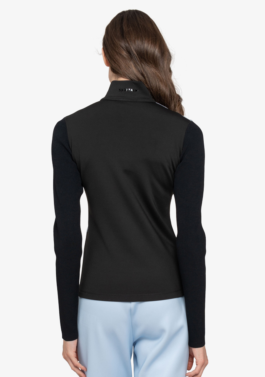 Tento dámský rolák Sportalm v barvě Morning Blues kombinuje styl a funkčnost, což z něj dělá ideální volbu pro chladnější dny. Vyroben z 85% viskózy a 15% elastanu, poskytuje pohodlí a pružnost, zatímco jeho precizní silueta a stojáček s jemným zipem dodávají moderní vzhled.