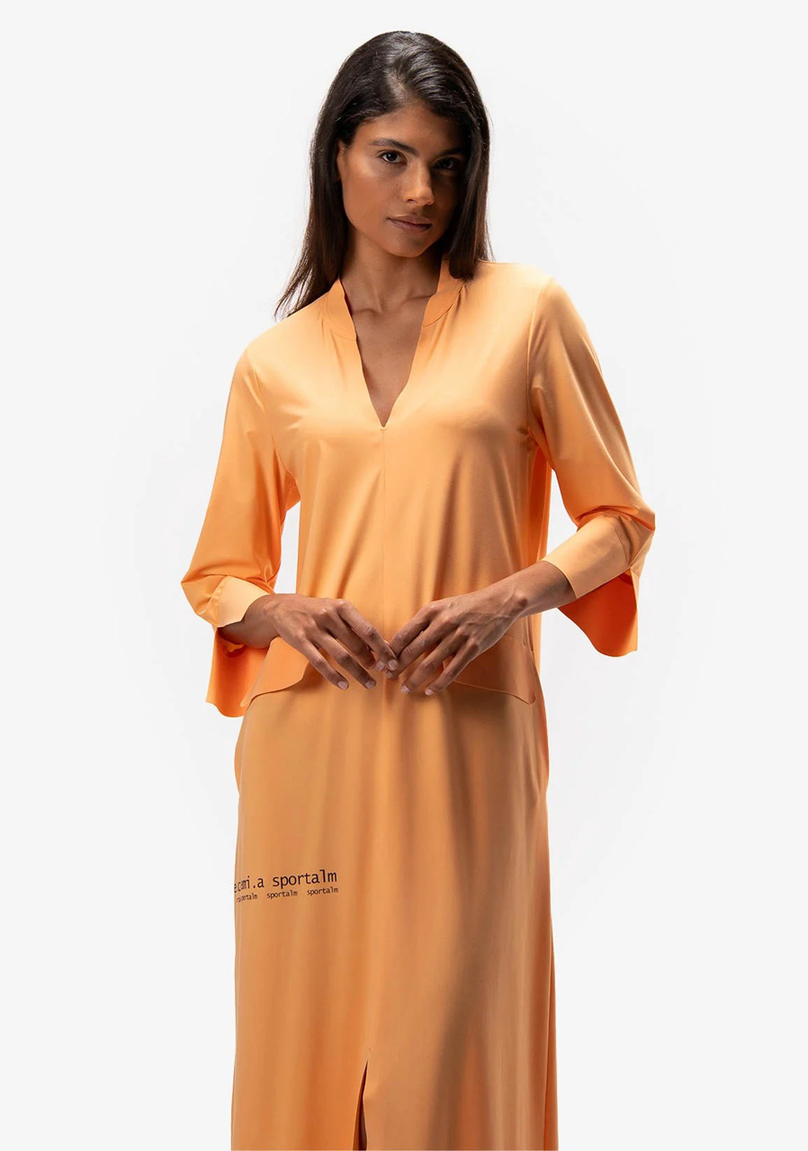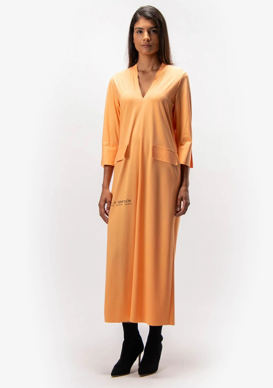 - dámské módní dlouhé šaty s 3/4 rukávem zakončenými ohrnutím