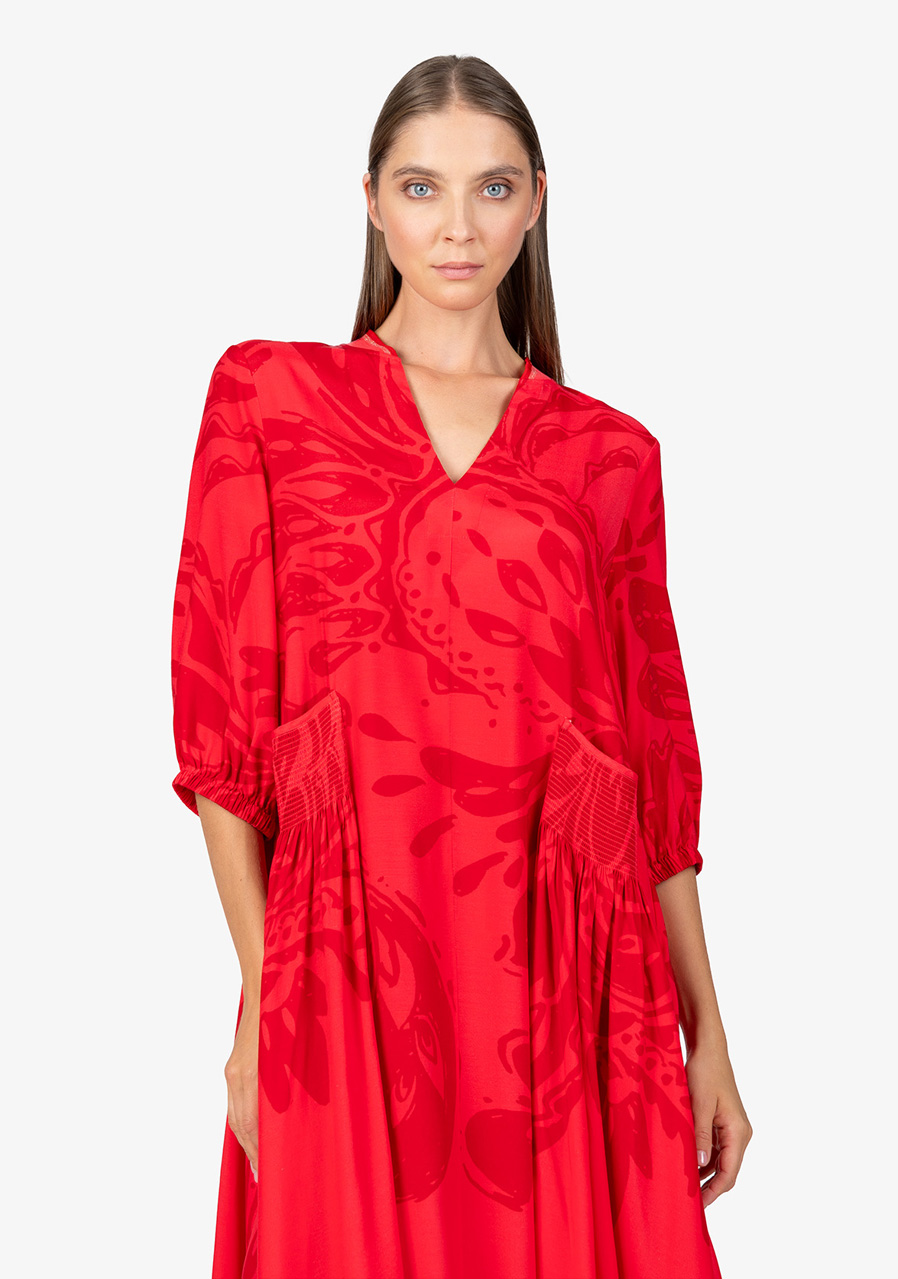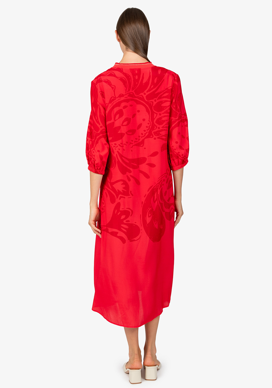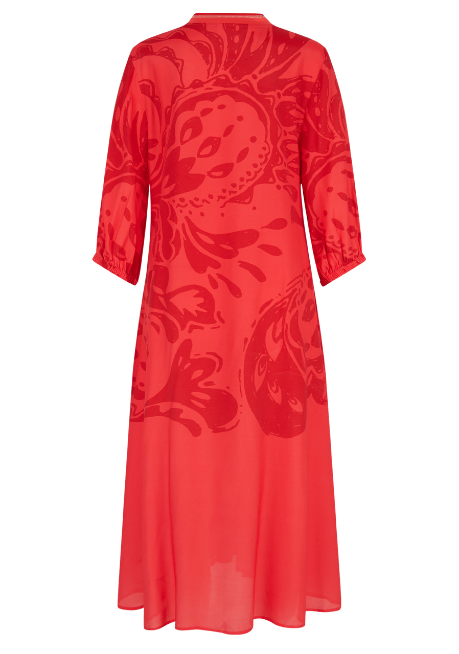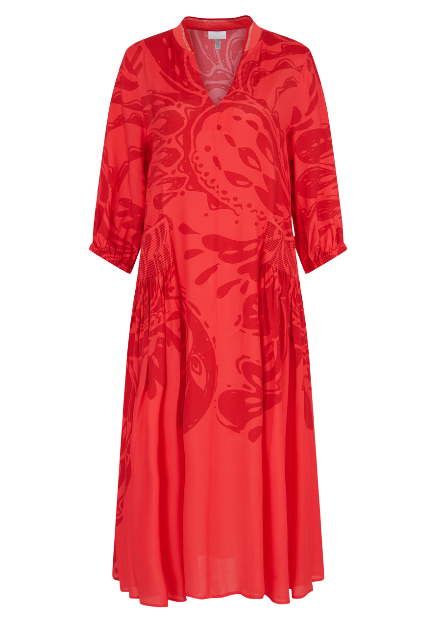 Dámské šaty Sportalm 550153 Strawberry Red jsou ideální volbou pro teplé letní dny. Tyto maxi šaty v širokém střihu jsou nejen stylové, ale i pohodlné, a s jejich vzdušnou šířkou se budete cítit skvěle po celý den. Celoplošný velký potisk paisley dodává šatům originální a moderní vzhled, který zaručeně přitáhne pozornost.