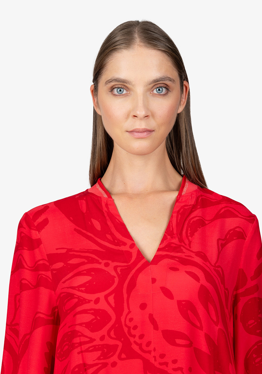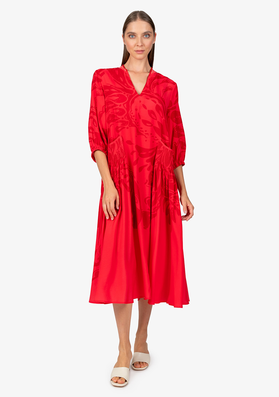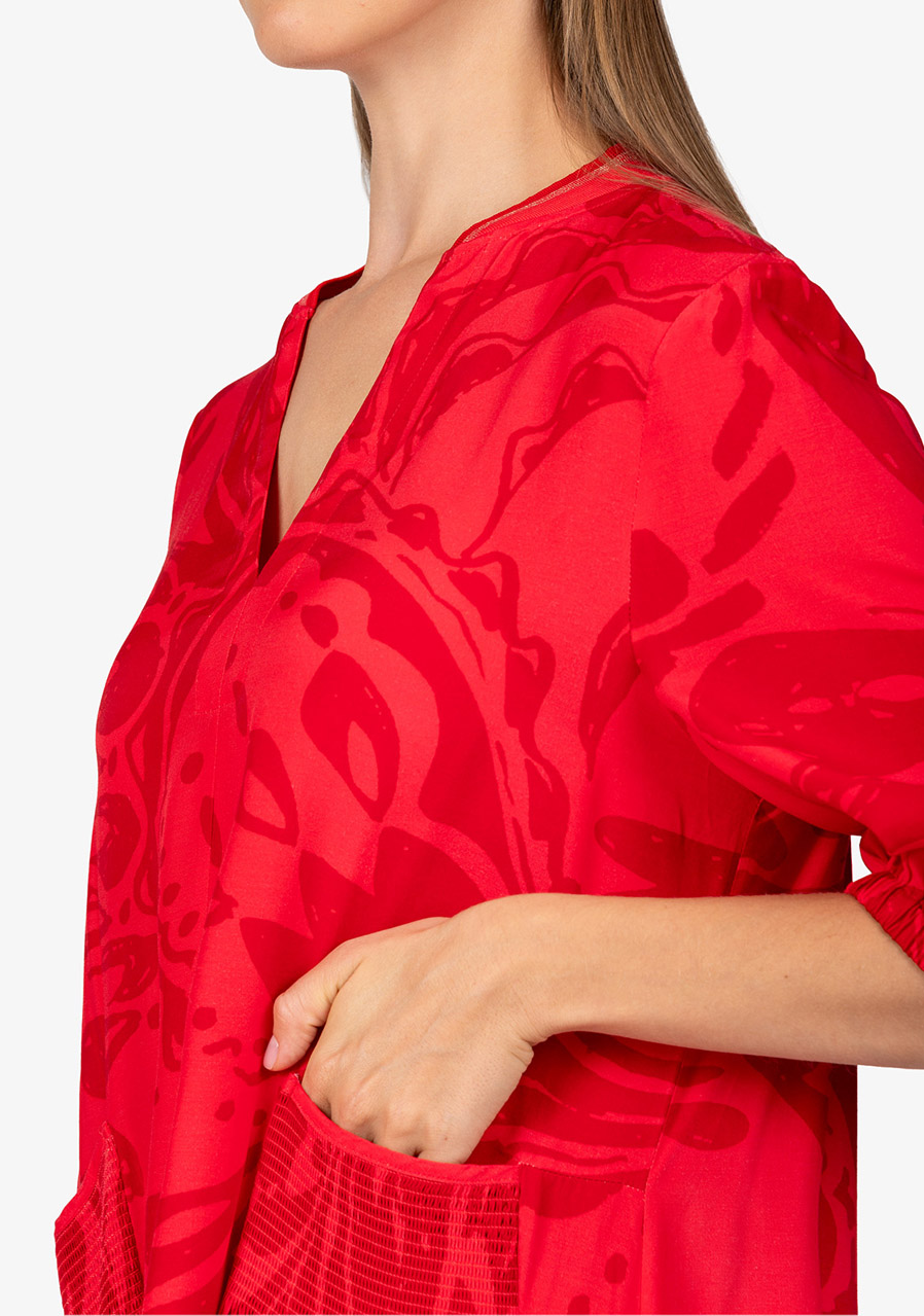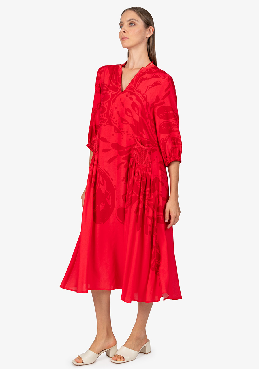 Dámské šaty Sportalm 550153 Strawberry Red jsou ideální volbou pro teplé letní dny. Tyto maxi šaty v širokém střihu jsou nejen stylové, ale i pohodlné, a s jejich vzdušnou šířkou se budete cítit skvěle po celý den. Celoplošný velký potisk paisley dodává šatům originální a moderní vzhled, který zaručeně přitáhne pozornost.