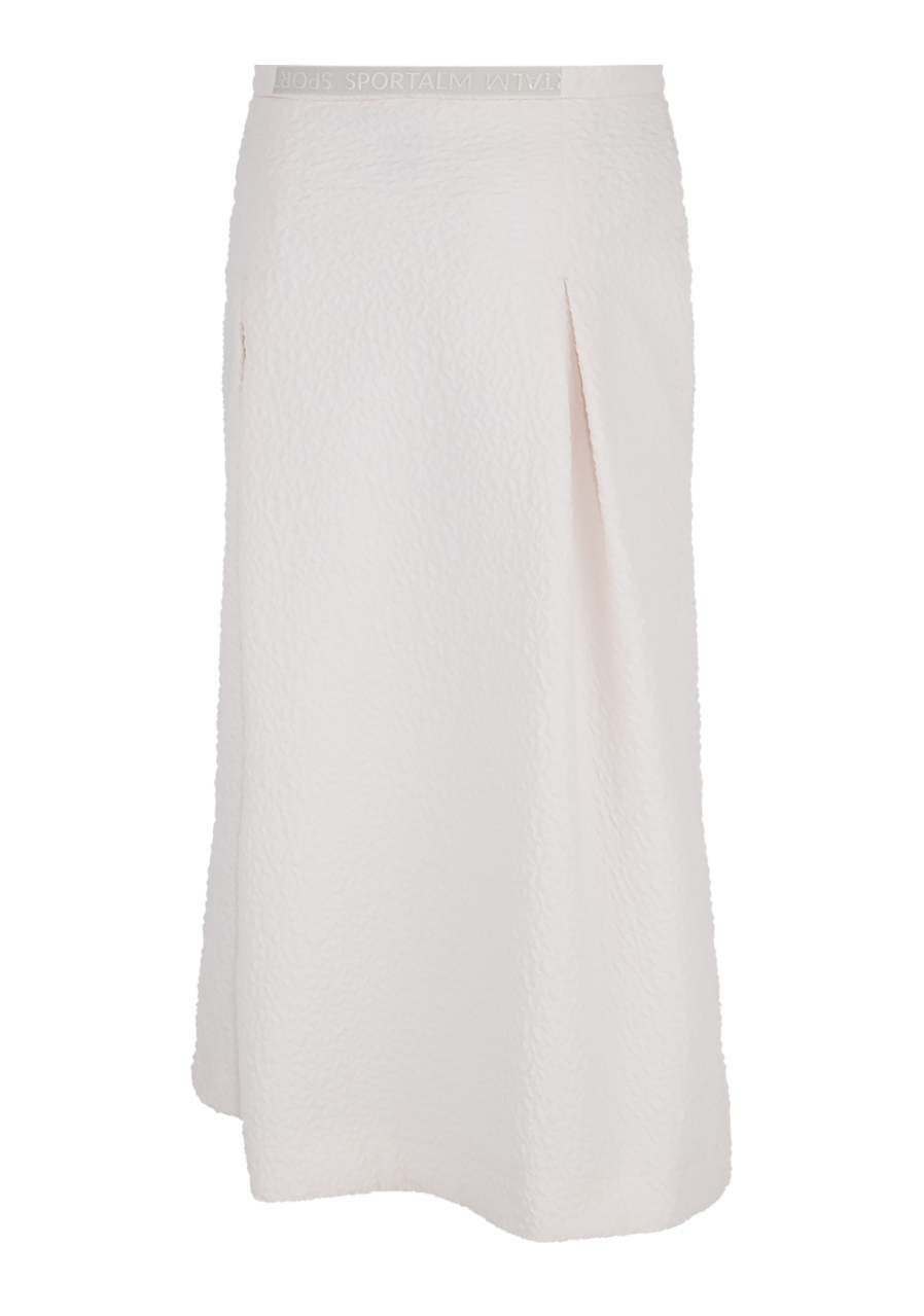 Další parametry: Sukně má úzký pas s pleteným páskem a silikonovým logem Sportalm uprostřed zad, který dodává sofistikovaný nádech. Ležérní objem vzniká díky položeným záhybům a střih ve tvaru A-line krásně zvýrazňuje postavu. Skrytý zip na boku zajišťuje snadné oblékání a čistý vzhled.