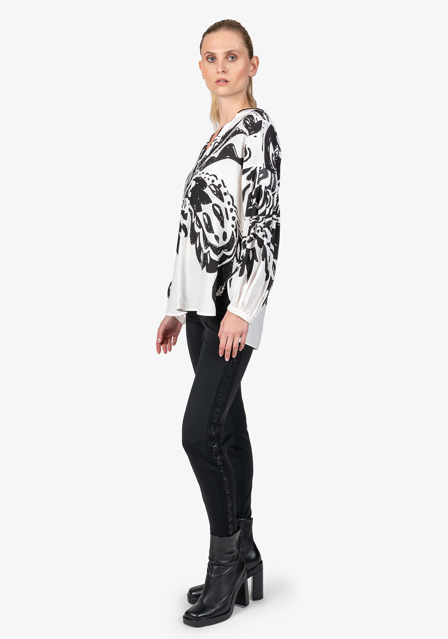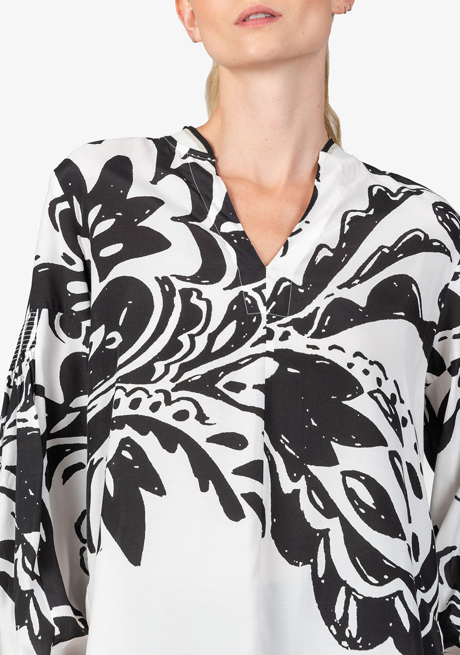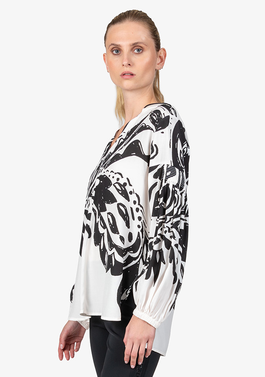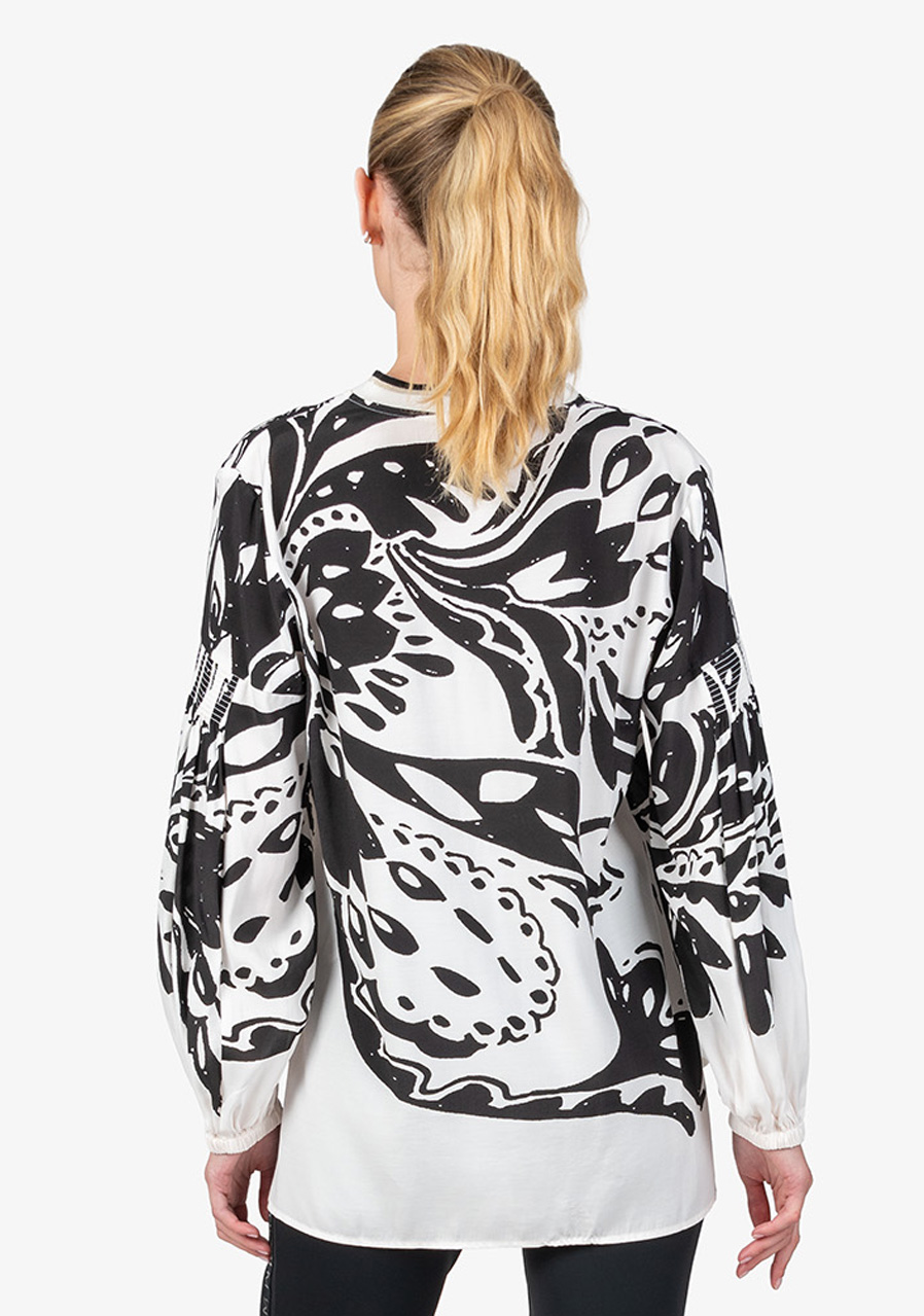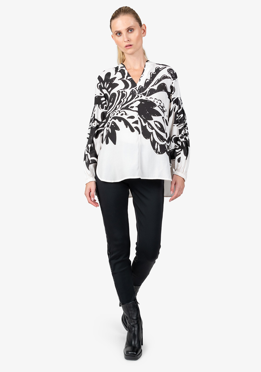 Dámská halenka Sportalm 500094 Overcast je ideálním kouskem pro ženy, které hledají eleganci a osobitý styl. S velkým paisley potiskem a volným střihem působí moderně a ležérně, přičemž propracované detaily, jako jsou objemné rukávy se záhyby a neviditelným elastickým lemem, dodávají halence originální vzhled.