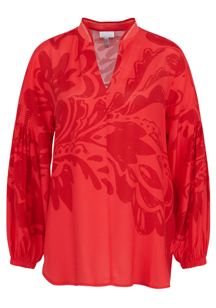 Dámská halenka Sportalm 500094 Strawberry Red je ideálním kouskem pro ženy, které hledají eleganci a osobitý styl. S velkým paisley potiskem a volným střihem působí moderně a ležérně, přičemž propracované detaily, jako jsou objemné rukávy se záhyby a neviditelným elastickým lemem, dodávají halence originální vzhled.