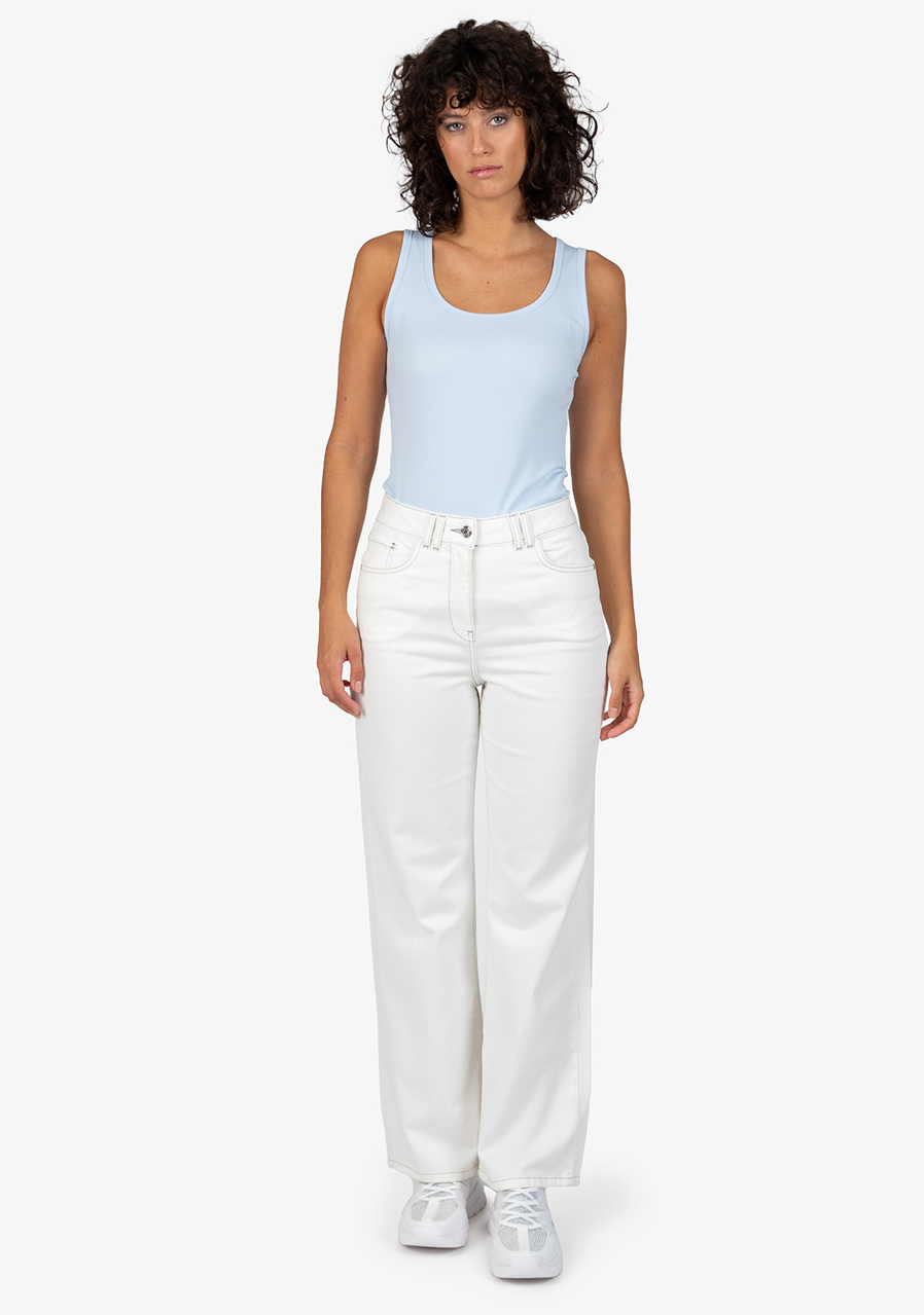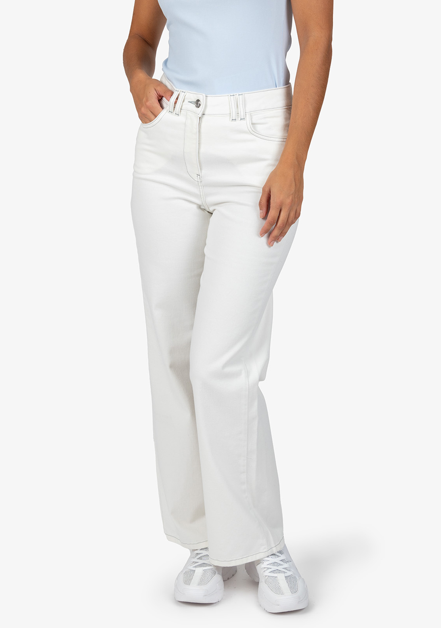 Tyto dámské džíny s širokými nohavicemi kombinují moderní design s maximálním pohodlím. Měkký bavlněný denim se příjemně nosí a přiléhavý střih lichotí postavě. Široké, rovné nohavice vytváří módní siluetu, zatímco kontrastní prošití a detaily s logem Sportalm dodávají džínám charakteristický styl.