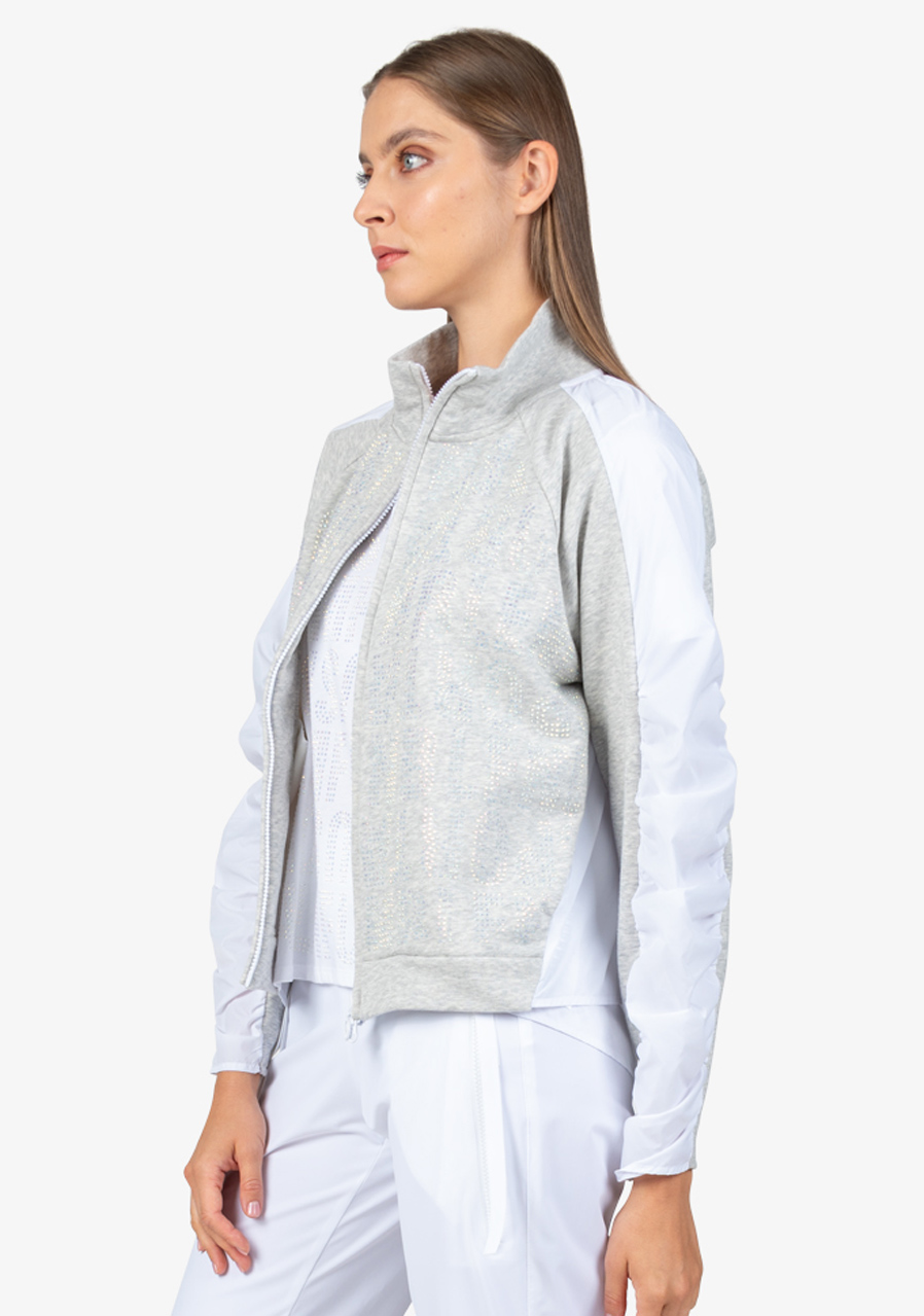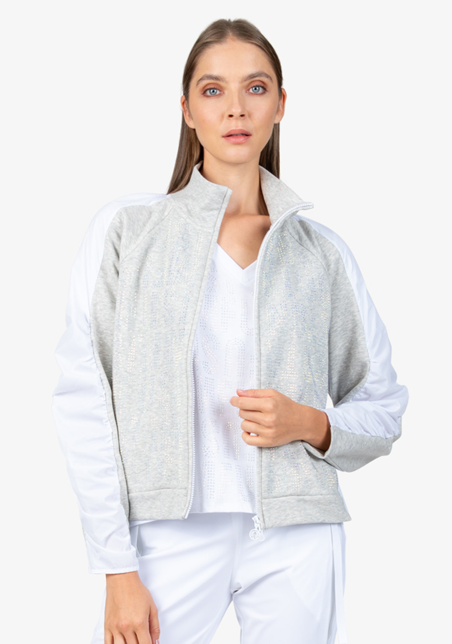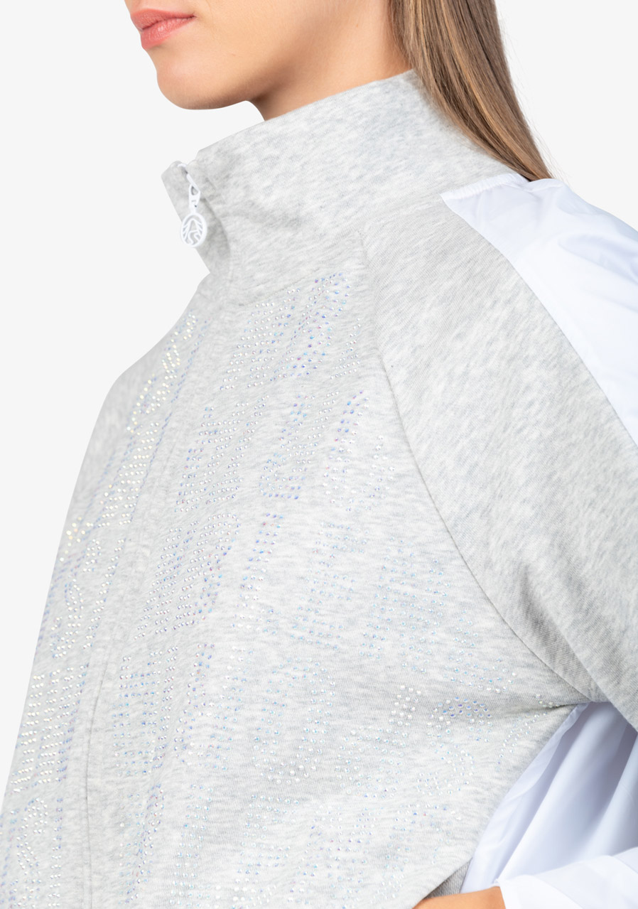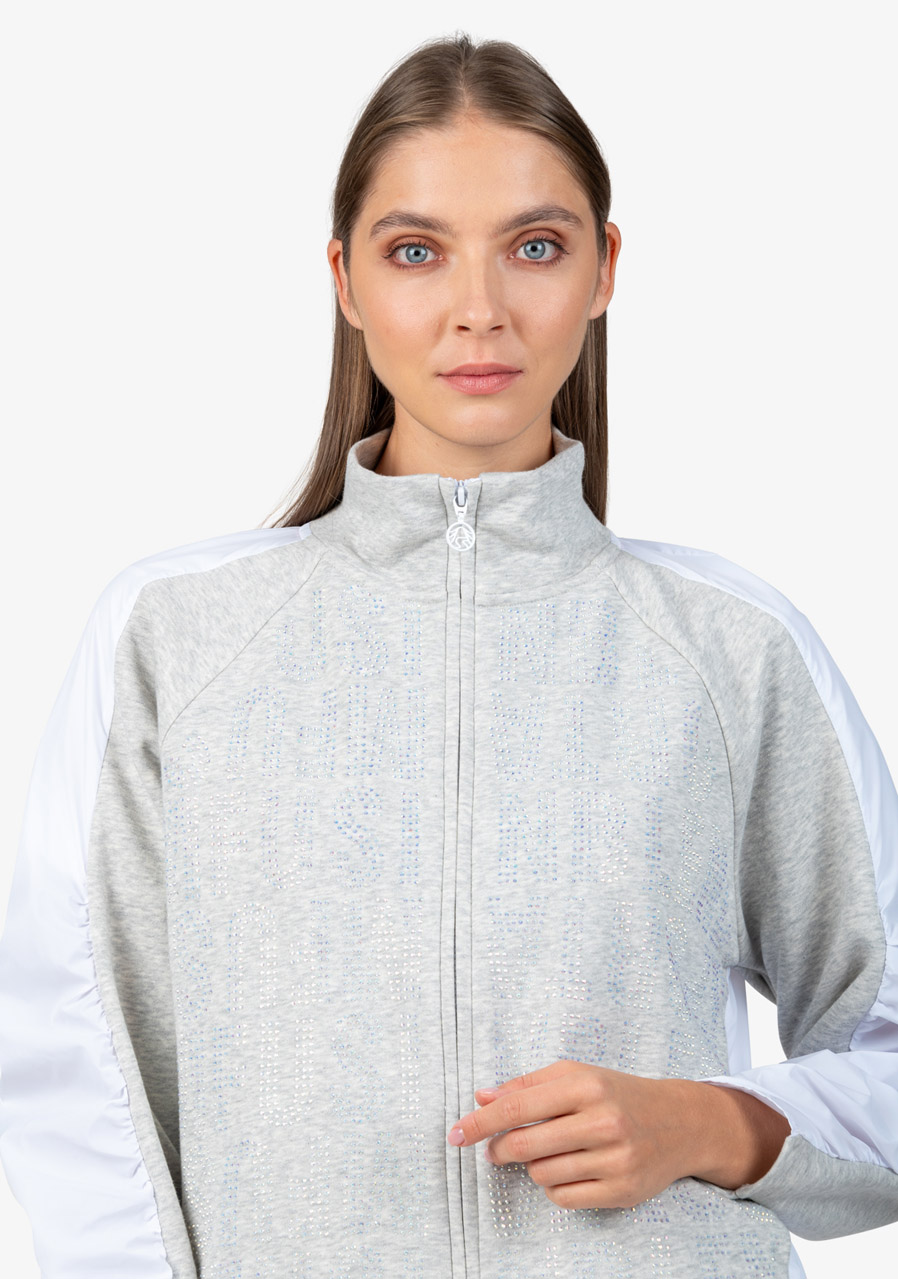 Další parametry: Mikina je vyrobena z kombinace kvalitního potu a vysoce kvalitního nylonového materiálu, což jí zajišťuje pohodlí i odolnost. Tvar O střihu nabízí volnost pohybu a pohodlné nošení. Stojáček na límci a raglánové rukávy s nabíráním ve švech přidávají mikině moderní sportovní vzhled. Přední zapínání na viditelný dvoucestný zip je praktické a zároveň trendy. Mikina je vybavena bočními kapsami, které poskytují praktické místo pro drobnosti. Na přední části je textový motiv z ozdobných kamenů, který přidává jemný luxusní detail, a záhyby vzadu dodávají mikině originální vzhled. Dámská mikina Sportalm 400151 Cold Concrete je pro každou ženu, která chce vypadat trendy a zároveň se cítit pohodlně.