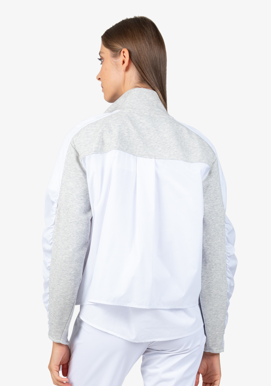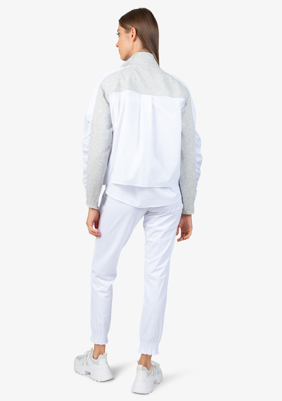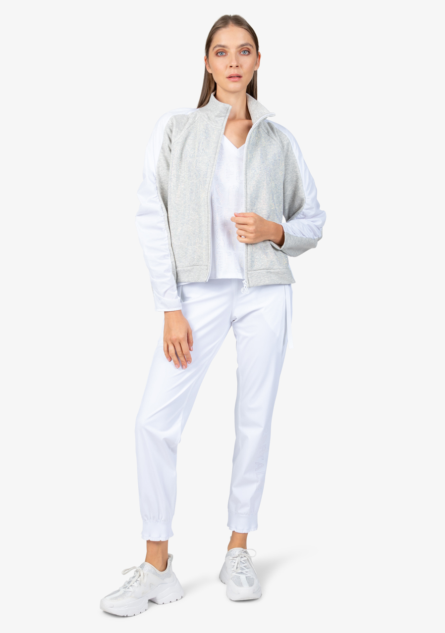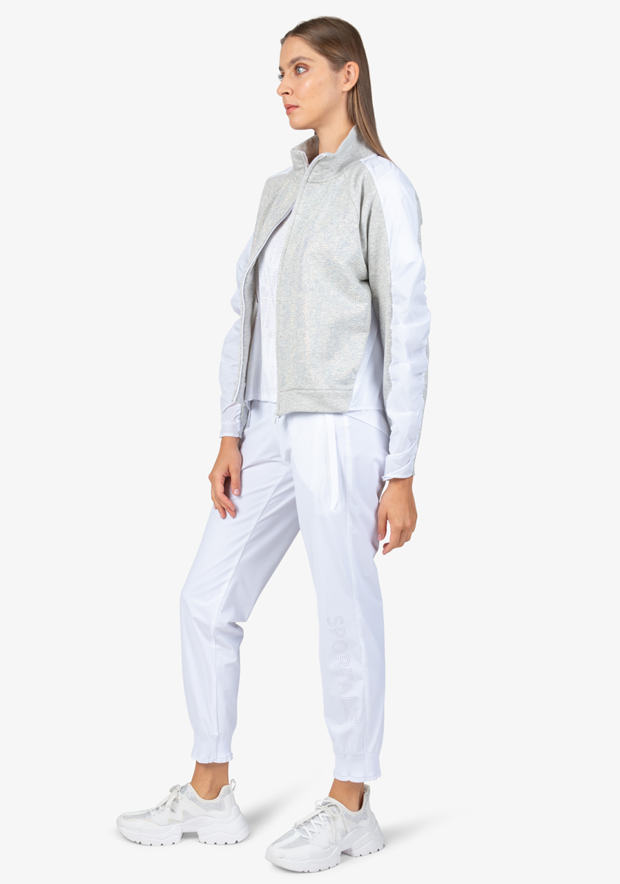 Další parametry: Mikina je vyrobena z kombinace kvalitního potu a vysoce kvalitního nylonového materiálu, což jí zajišťuje pohodlí i odolnost. Tvar O střihu nabízí volnost pohybu a pohodlné nošení. Stojáček na límci a raglánové rukávy s nabíráním ve švech přidávají mikině moderní sportovní vzhled. Přední zapínání na viditelný dvoucestný zip je praktické a zároveň trendy. Mikina je vybavena bočními kapsami, které poskytují praktické místo pro drobnosti. Na přední části je textový motiv z ozdobných kamenů, který přidává jemný luxusní detail, a záhyby vzadu dodávají mikině originální vzhled. Dámská mikina Sportalm 400151 Cold Concrete je pro každou ženu, která chce vypadat trendy a zároveň se cítit pohodlně.