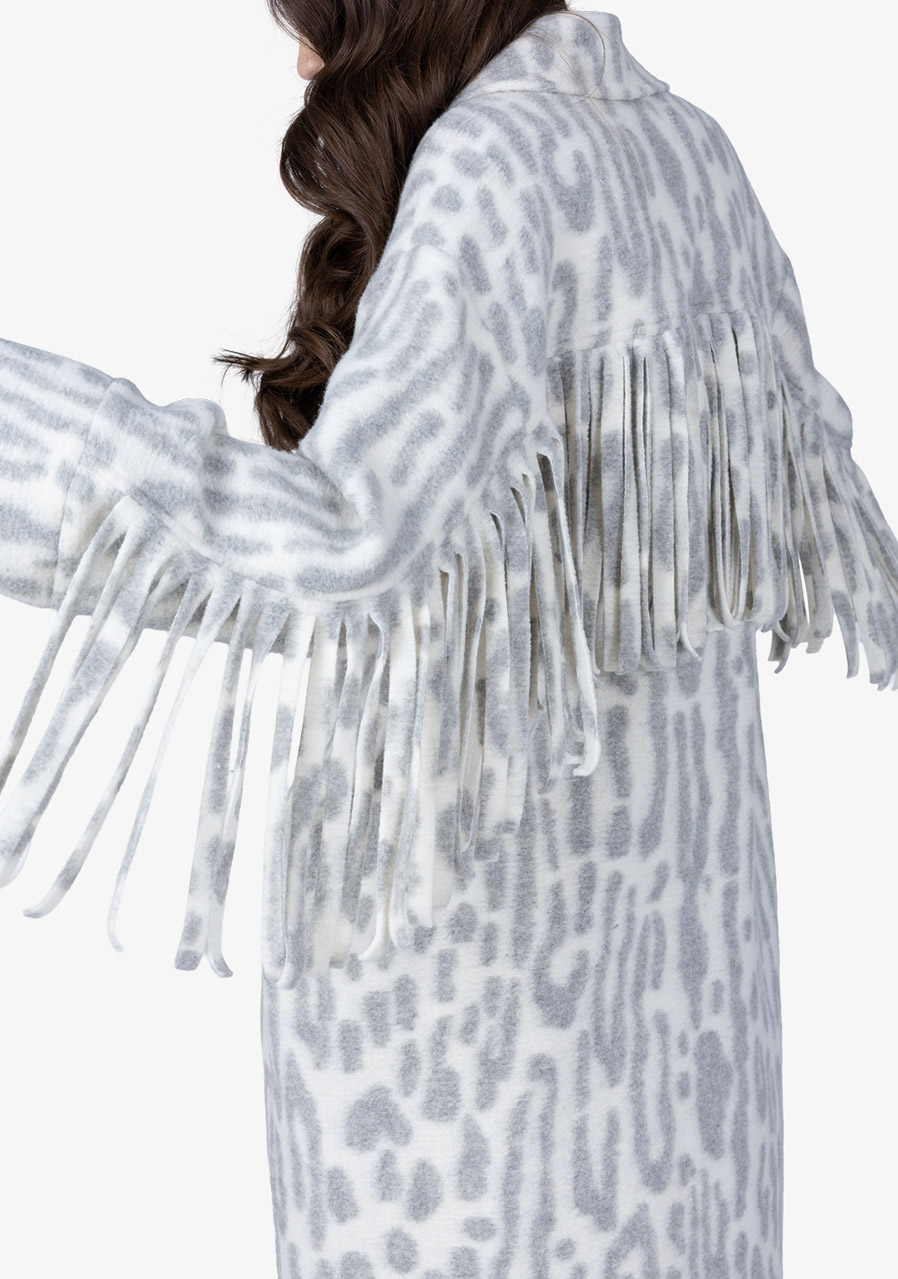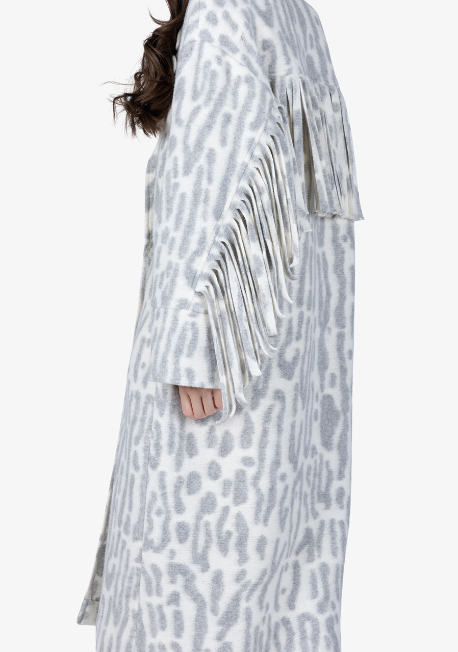 Tento výrazný kabát po lýtka z kvalitní vlněné směsi zaujme módním leopardím vzorem a moderním střihem. Lehký O-tvar dodává siluetě ležérní eleganci a zároveň zajišťuje pohodlné nošení.