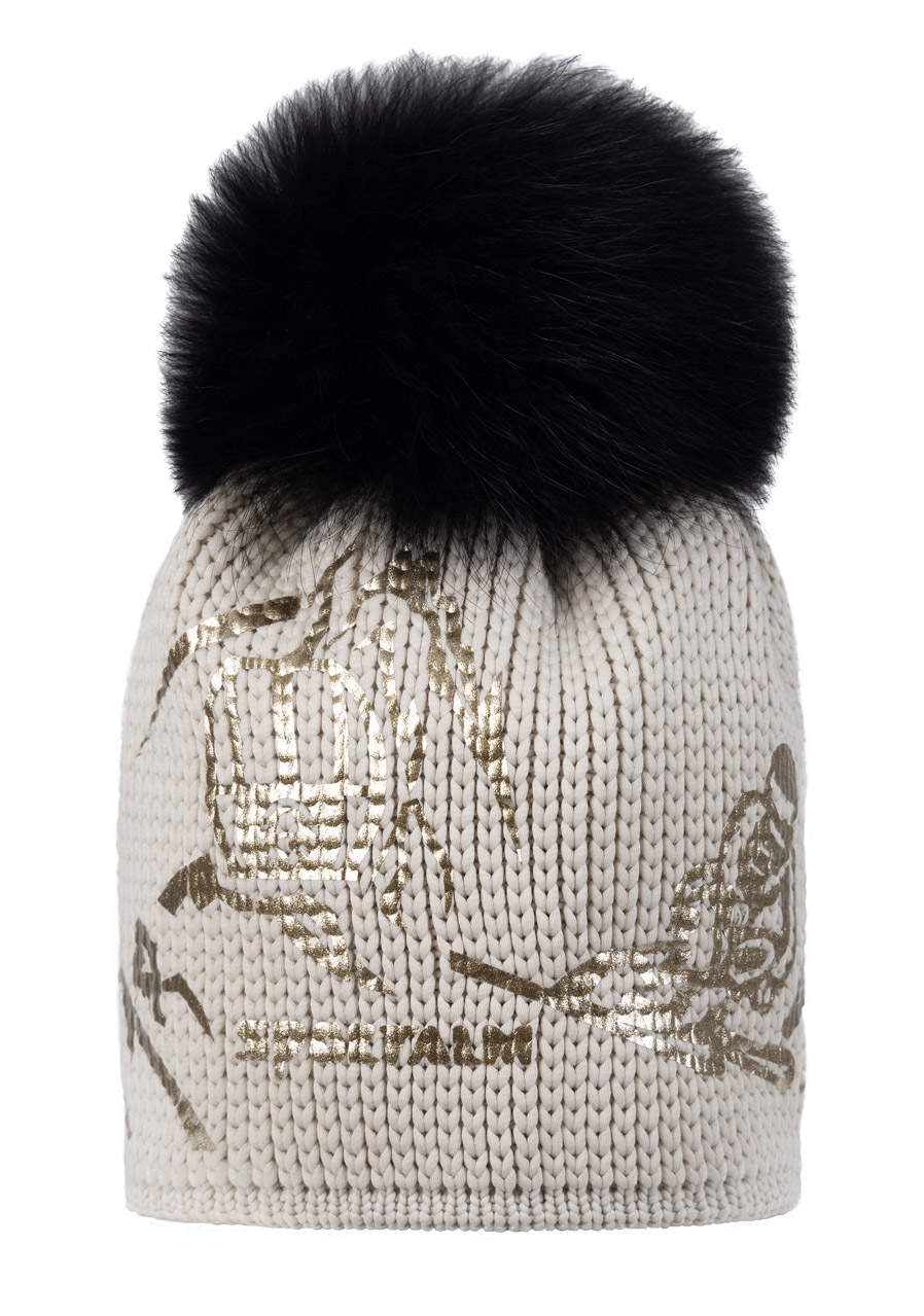 Tato mohutná pletená dámská čepice Sportalm v trendy metalické ledově zlaté barvě zaujme propracovaným fóliovým potiskem, který zobrazuje lyžaře a horské motivy. Stylový design doplňuje odnímatelná bambule z pravé kožešiny, která dodává čepici luxusní nádech. Zevnitř je čepice podšitá hřejivým fleecem, což zajišťuje maximální komfort a teplo i v těch nejchladnějších dnech. Tento kousek kombinuje módní vzhled s funkčností, a je tak ideálním zimním doplňkem pro všechny, kdo ocení styl a pohodlí.