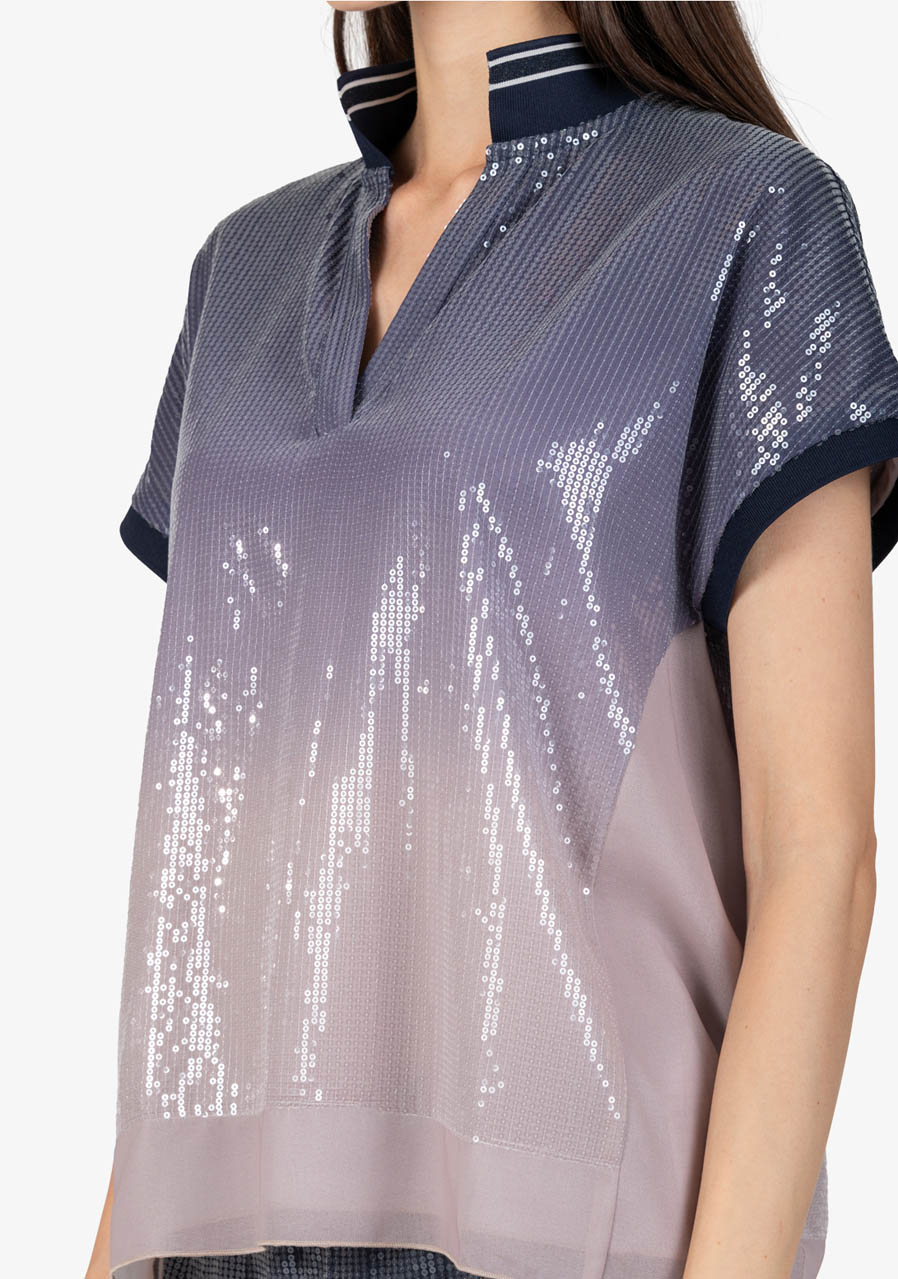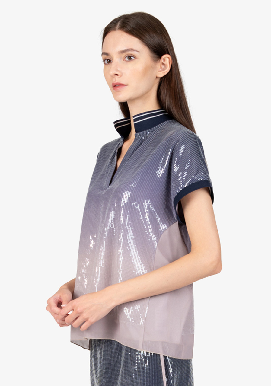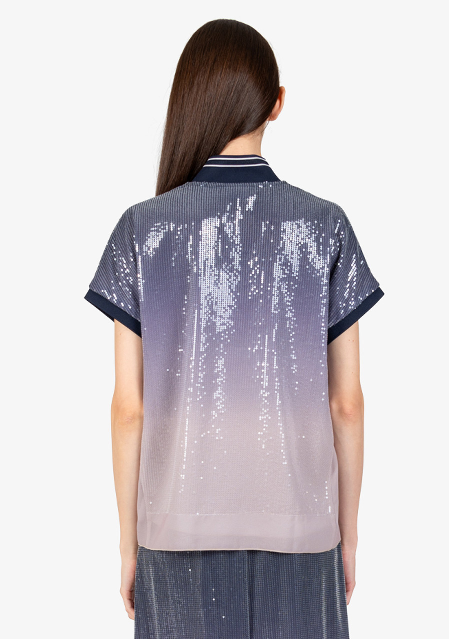 Dámské tričko Sportalm 250154 Dark Deep Water je moderní interpretací klasického polo trika. Jeho výrazným prvkem jsou flitry s módním barevným přechodem, které přidávají na stylovosti a vytvářejí poutavý vzhled. Toto polo tričko je ideální volbou pro zvláštní příležitosti i módní outfity.