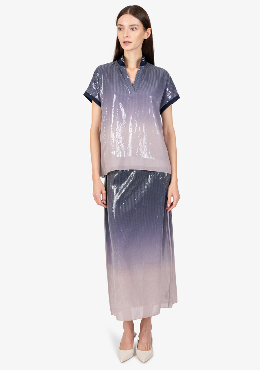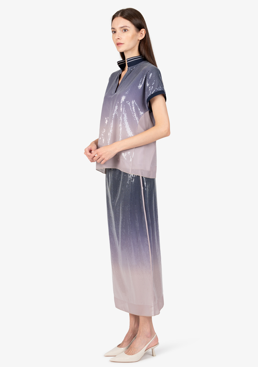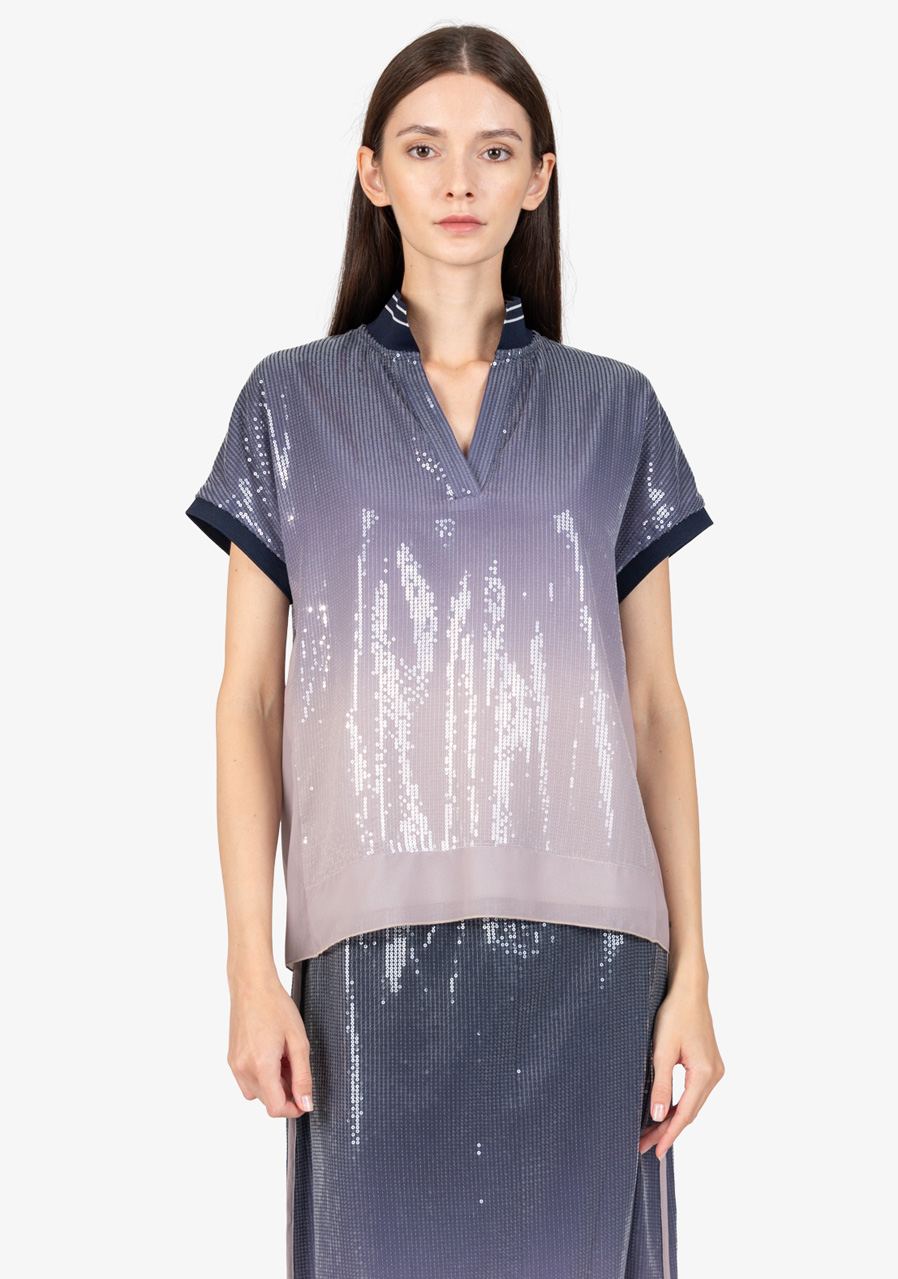Dámské tričko Sportalm 250154 Dark Deep Water je moderní interpretací klasického polo trika. Jeho výrazným prvkem jsou flitry s módním barevným přechodem, které přidávají na stylovosti a vytvářejí poutavý vzhled. Toto polo tričko je ideální volbou pro zvláštní příležitosti i módní outfity.