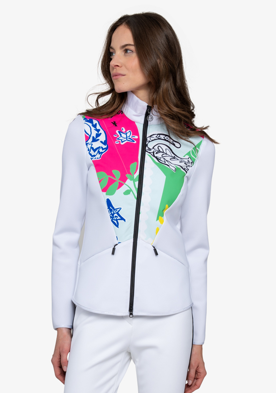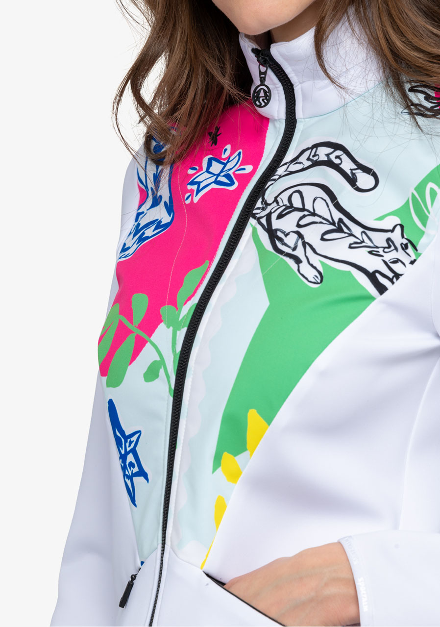 Dámská mikina Sportalm v blé barvě je stylovým spojením elegance a funkčnosti. Vyrobena z elastického žerzeje (85 % polyester, 15 % elastan), nabízí maximální pohodlí a flexibilitu. Přední část zdobí kvalitní nylon s unikátním potiskem, který opticky zeštíhluje postavu.