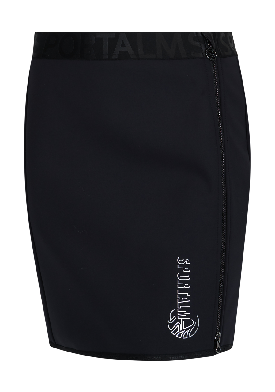 Tato dámská zimní sukně v černé barvě Sportalm ze softshellového materiálu je skvělou volbou pro aktivní ženy, které hledají spojení funkčnosti a stylu. Široký elastický pas s elegantním reliéfním nápisem Sportalm poskytuje maximální komfort a dokonalé padnutí. Nápadný přenos vzoru na přední části dodává sukni sportovní a sofistikovaný nádech.