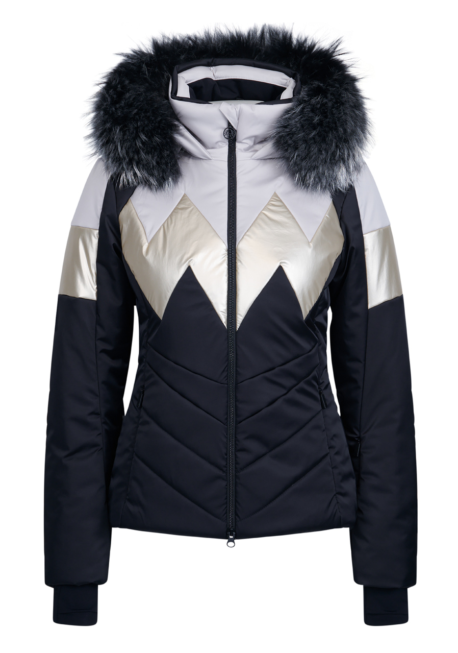 - dámská lyžařská bunda s kapucí a pravou kožešinou mývala