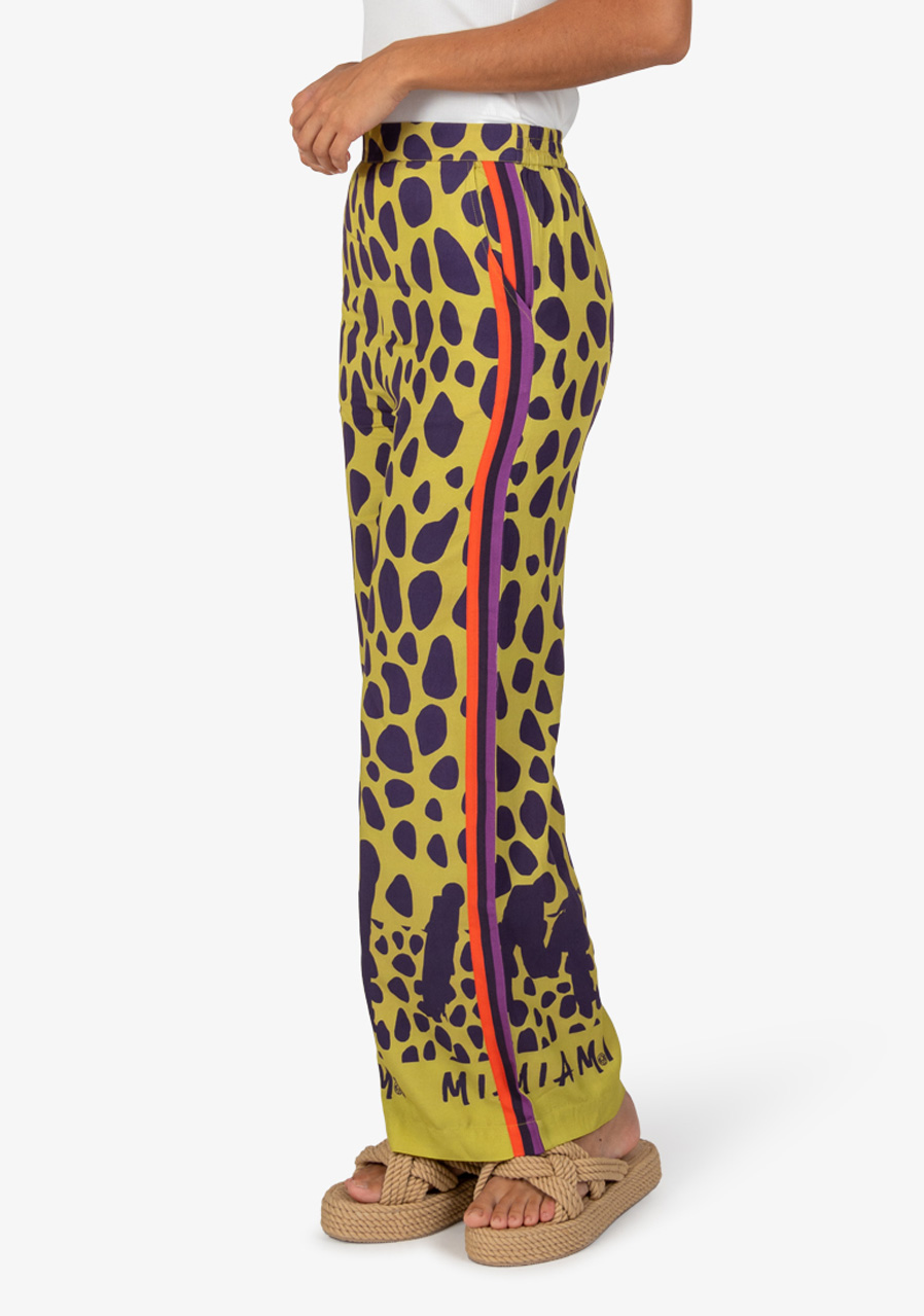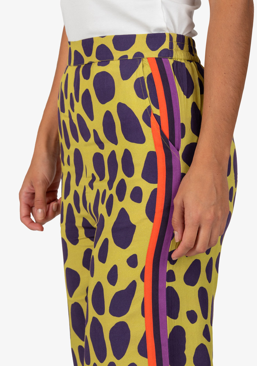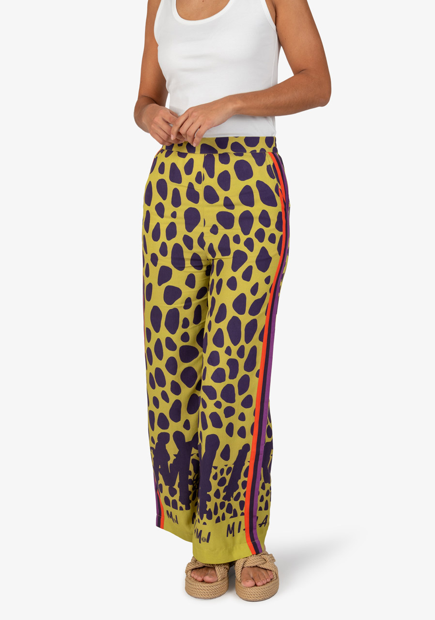 Tyto poutavé kalhoty zaujmou extravagantním celoplošným potiskem a ležérním střihem. Vyrobené z vysoce kvalitní viskózy nabízejí mimořádné pohodlí a volnost pohybu, zatímco jejich výrazný design dodává každému outfitu módní výraz. Ideální volba pro moderní a uvolněné letní kombinace.
