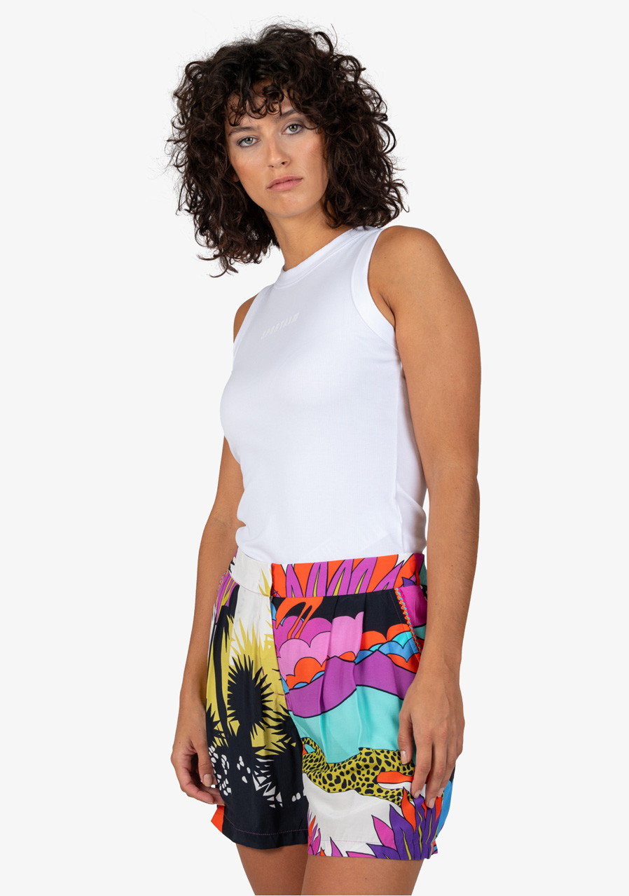 Materiál: vysoce kvalitní viskóza Vzor: potisk s motivem kolekce Střih: volný Styl: sportovní, moderní Pas: klasické provedení se skrytým háčkem Tvar nohavic: ležérní Kapsy: boční kapsy Zvýraznění: elastické lemování na kapsách