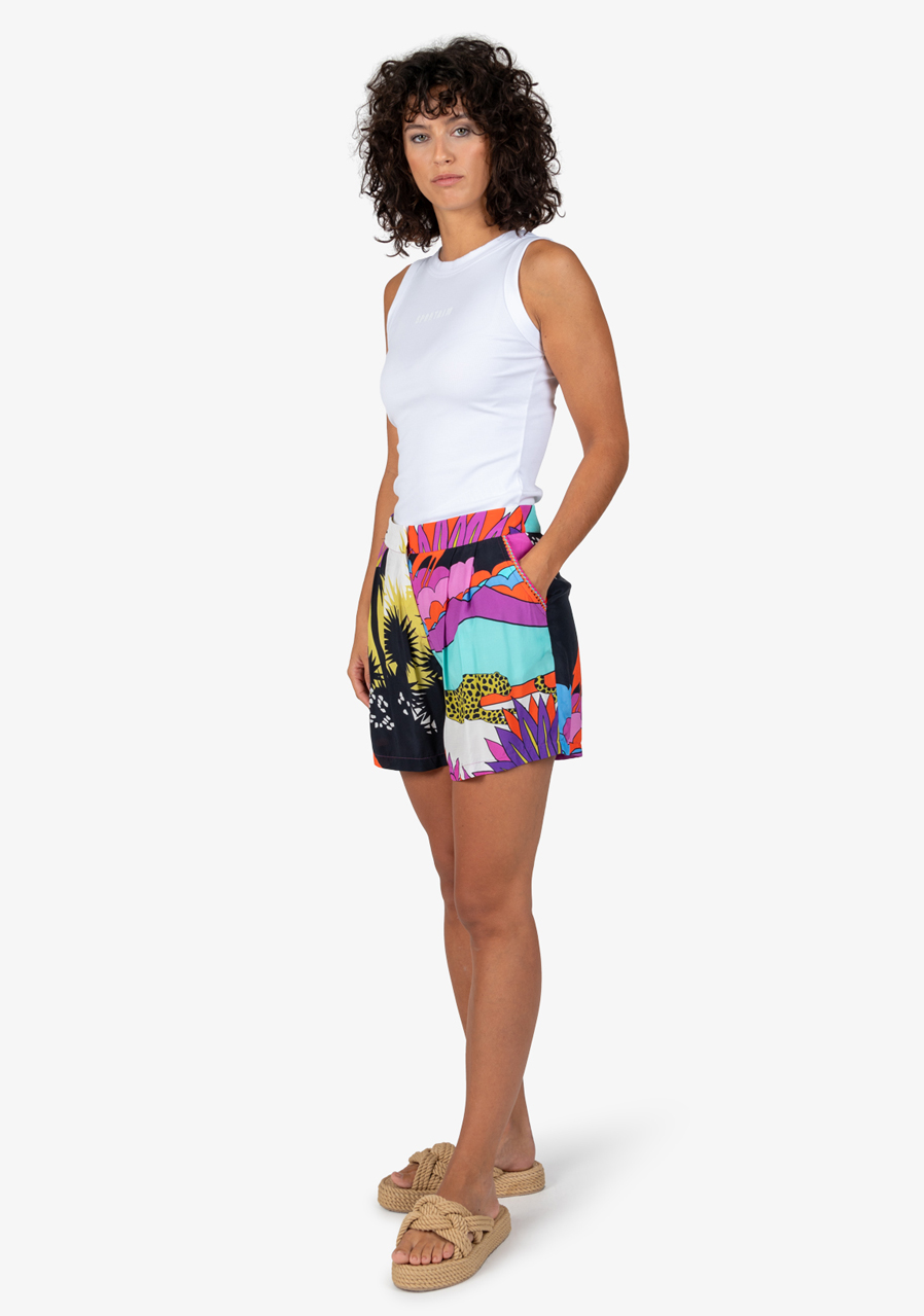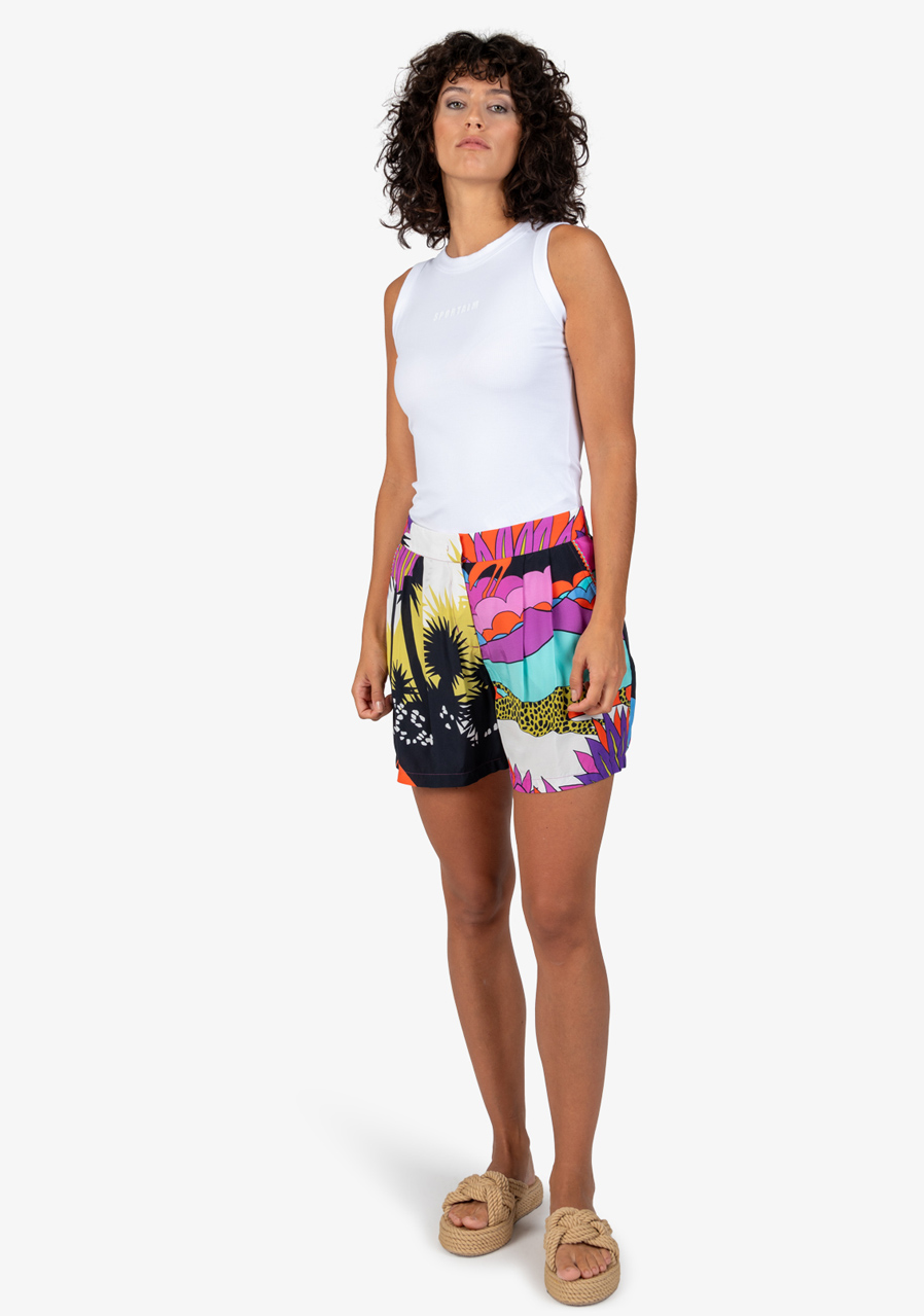 Tyto letní kraťasy s barevným potiskem zaujmou svým svěžím designem a ležérním střihem. Jsou ideální volbou pro horké dny, kdy chceš spojit pohodlí s moderním vzhledem. Lehký materiál a promyšlené detaily zajišťují maximální komfort při každodenním nošení.