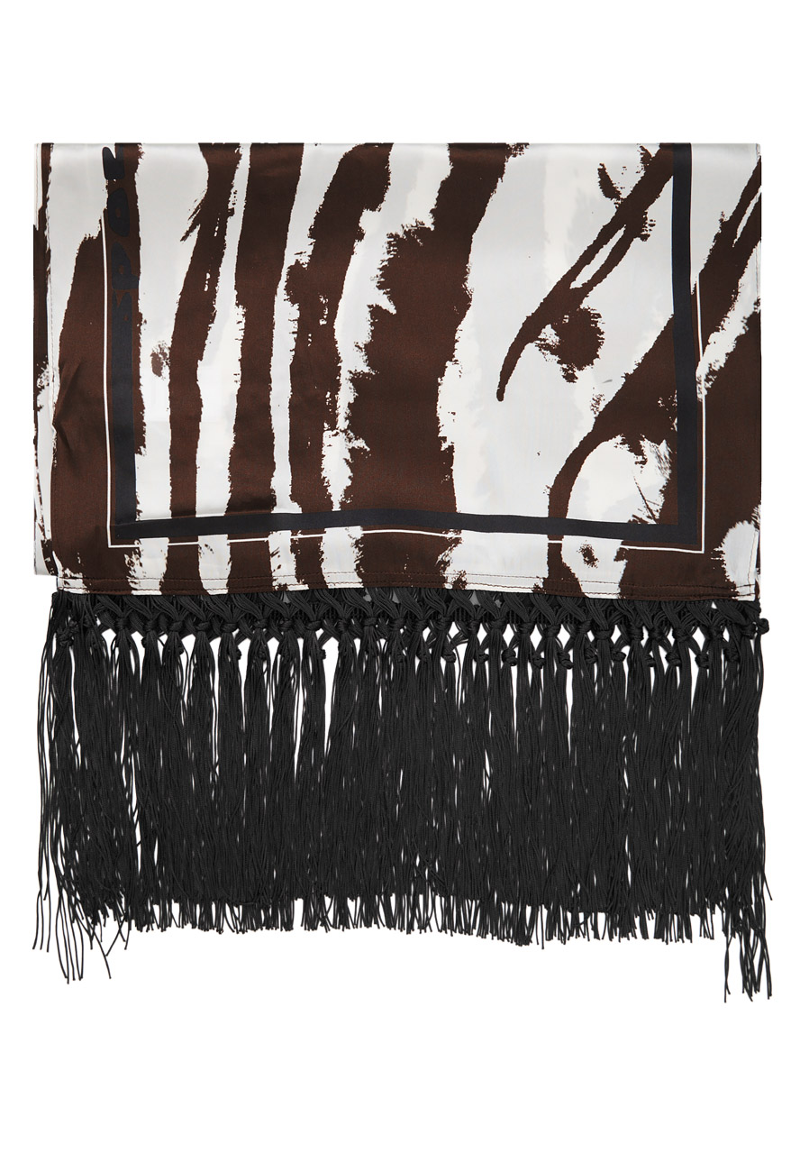 Stylová šála se zebřím designem dodá outfitu moderní a sofistikovaný akcent. Luxusní směs hedvábí s viskózou a elastanem je mimořádně příjemná na dotek, lehká a komfortní při nošení. Elegantní vzhled podtrhují našité saténové stužky a jemně svázané třásně na kratších stranách. Nadčasový doplněk, který skvěle doladí městské i elegantní kombinace typické pro Sportalm.