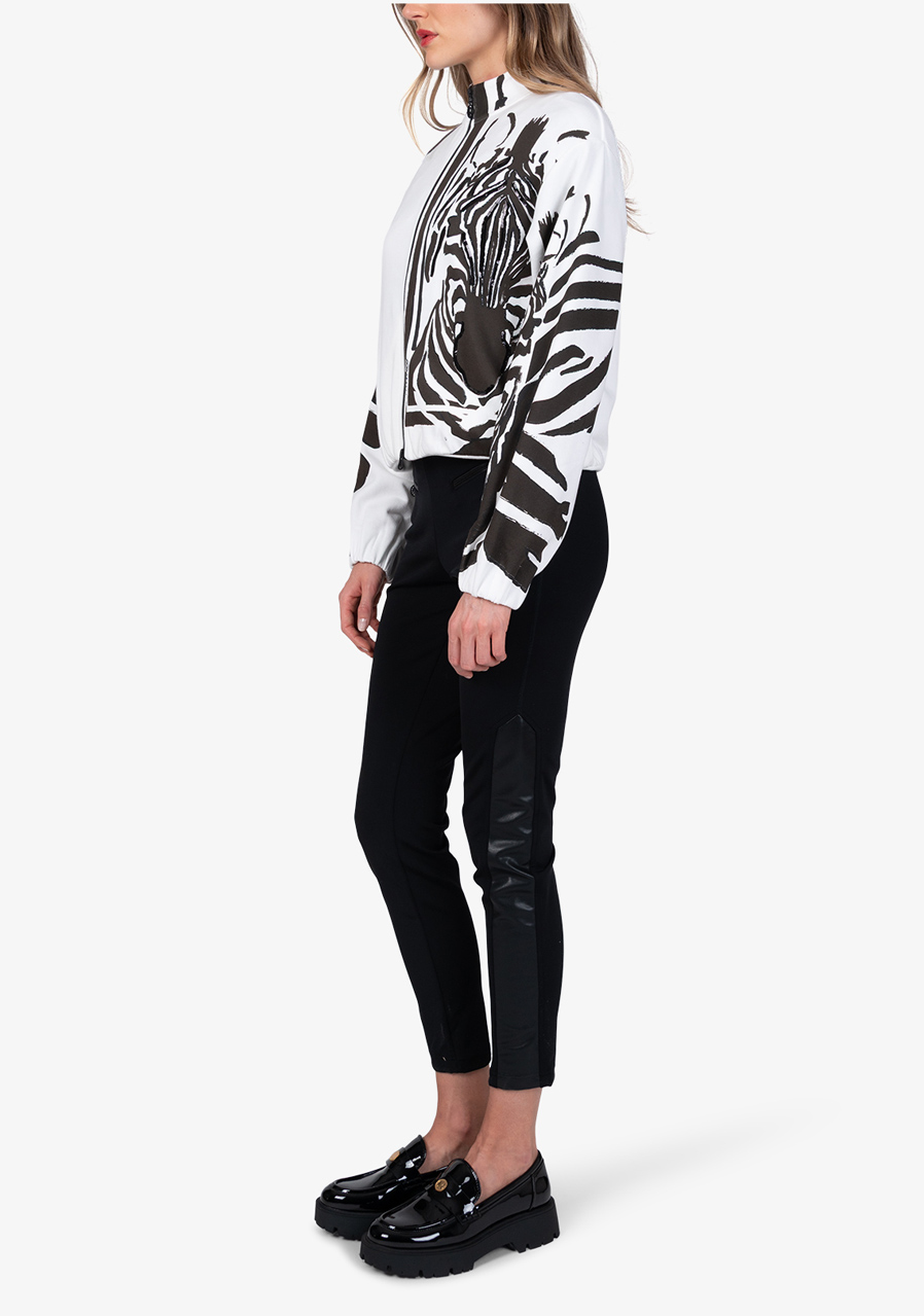 Detaily: kreativní zebří potisk s dekorativními prvky, silikonový logo transfer Sportalm