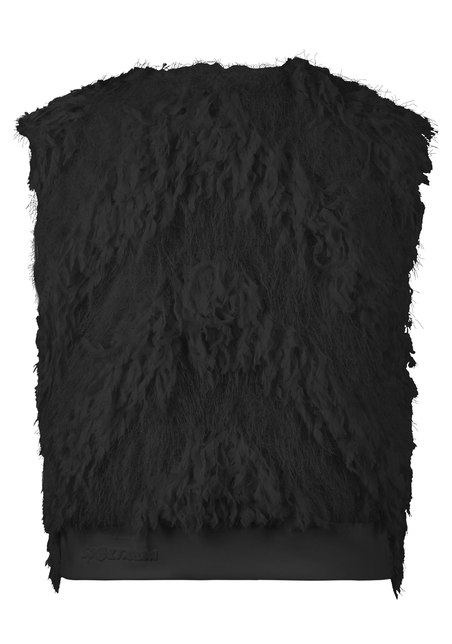 Tato výjimečná dámská vesta z extravagantního třásňového materiálu je navržena tak, aby okamžitě pozvedla každý outfit. Kombinuje ženskou eleganci s trendovým charakterem a díky jemně volnému, postavu obepínajícímu střihu působí moderně a sofistikovaně. V-výstřih prodlužuje siluetu a přední zapínání na háček zajišťuje čistý, minimalistický vzhled. Ramenní oblast je zvýrazněna drobnou légou a zadní díl zakončuje pasový lem s embossovaným Sportalm nápisem. Přední díl je navíc mírně prodloužený pro ještě zajímavější efekt. Vesta je podšitá měkkou sweat tkaninou, která poskytuje vysoký komfort při nošení.