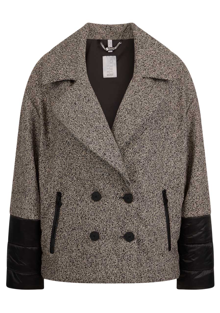 - s velkým klopovým límcem a prošívanými nylonovými rukávy